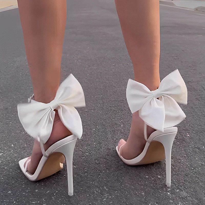 Introducing our Aleena Bow Heels from the Aesvs Shoes Collection! These high heels. available in delicate light pink. feature an eye-catching oversized bow at the ankle. offering a blend of elegance and playfulness. The slim stiletto heel and minimalist straps create a chic and sophisticated silhouette perfect for any special occasion.