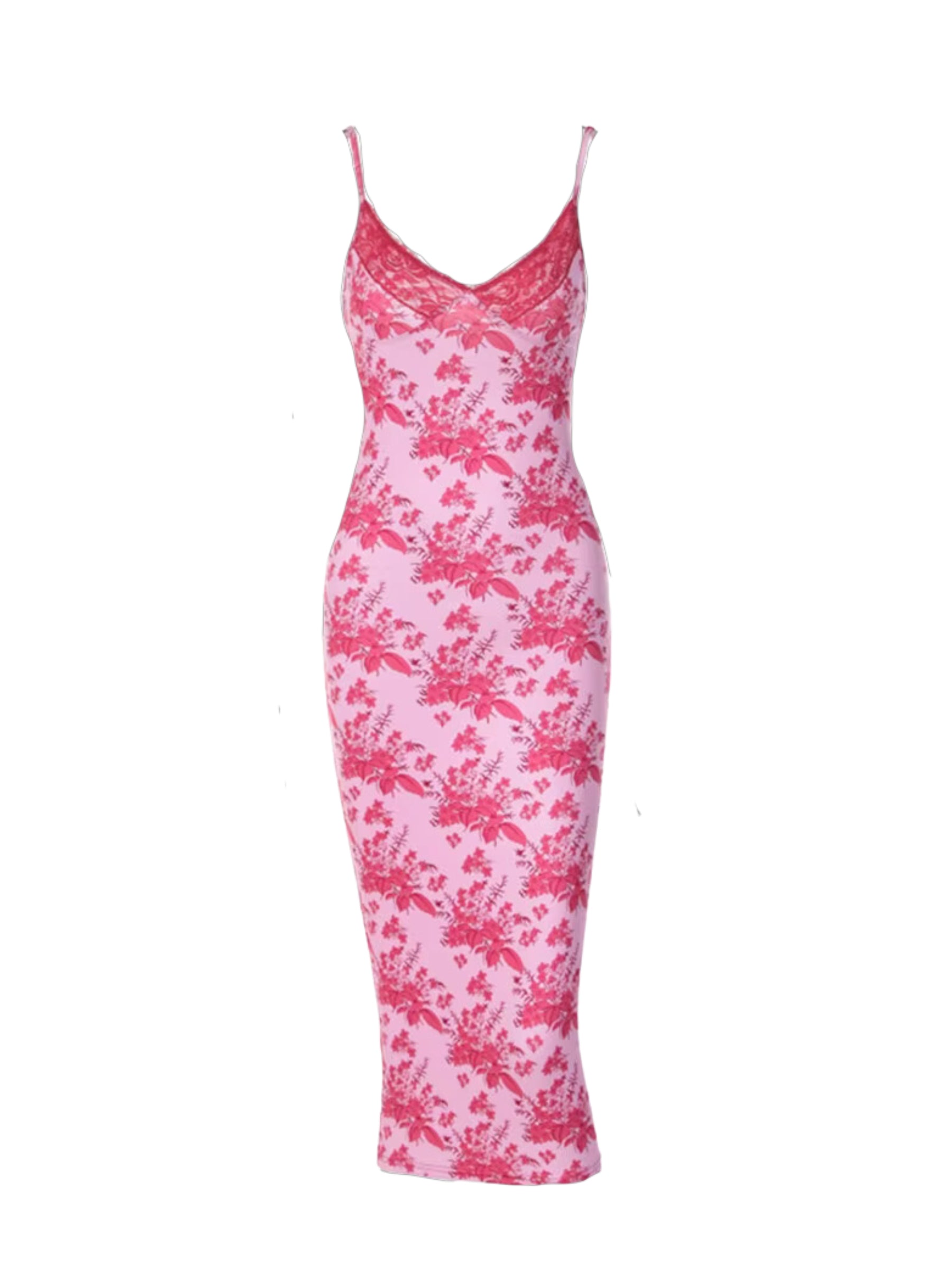 Be the epitome of floral elegance in the Alissa Floral Midi Dress! This figure-hugging bodycon dress in pink won't leave you unnoticed. It has an alluring deep V-neck with lace-up detail and adjustable spaghetti straps. Rock it for good girl vibes and get ready for some summer bloomin'!
