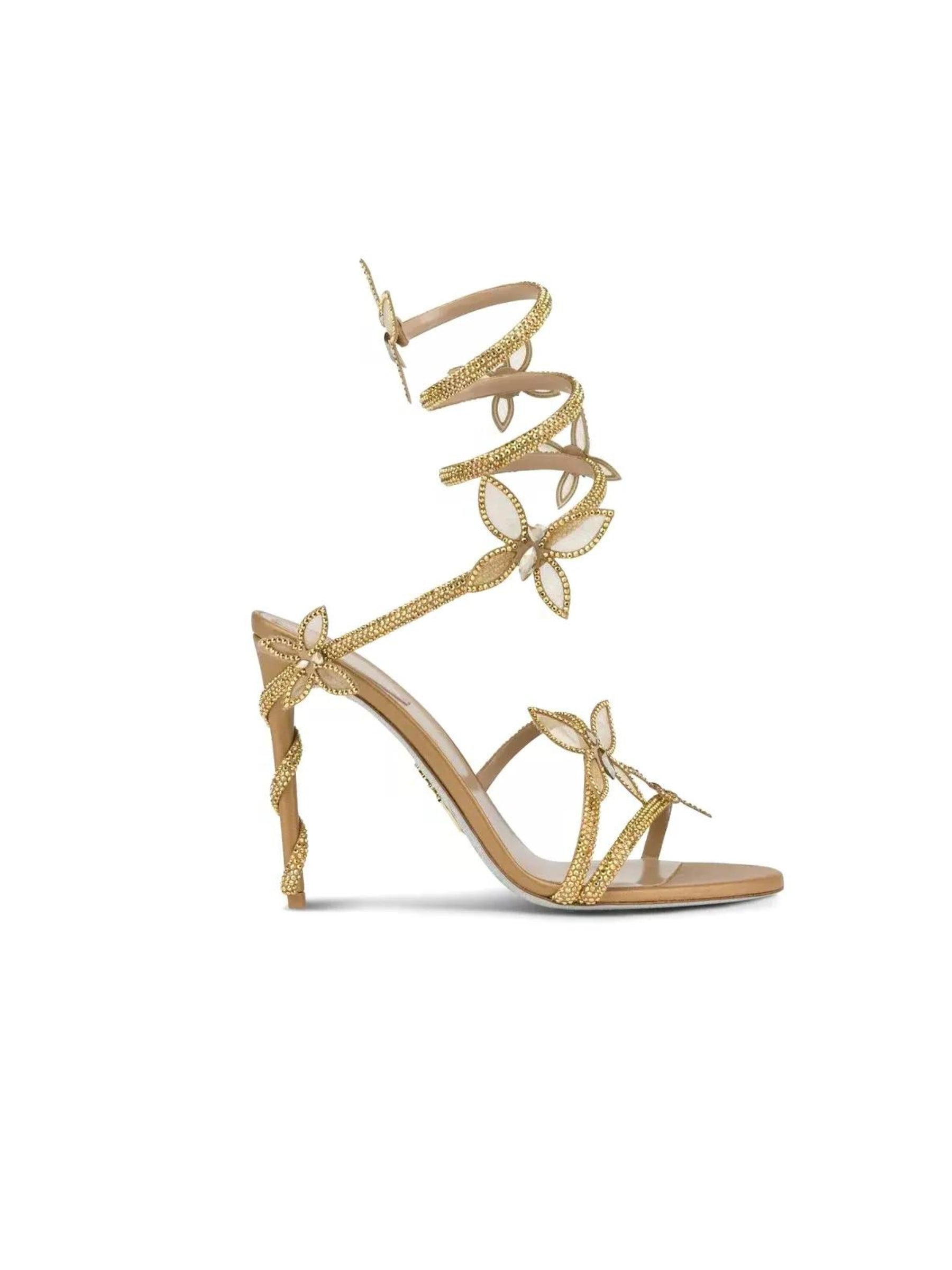 Get ready to flutter into style with the Althea Rhinestone Butterfly Heels. These striking stilettos feature a playful fairy style with sparkling crystal embellishments and cross straps to keep you secure. Made with high-quality sheep leather and an open toe design. these heels are from the Aesvs Shoes & Bags Collection.