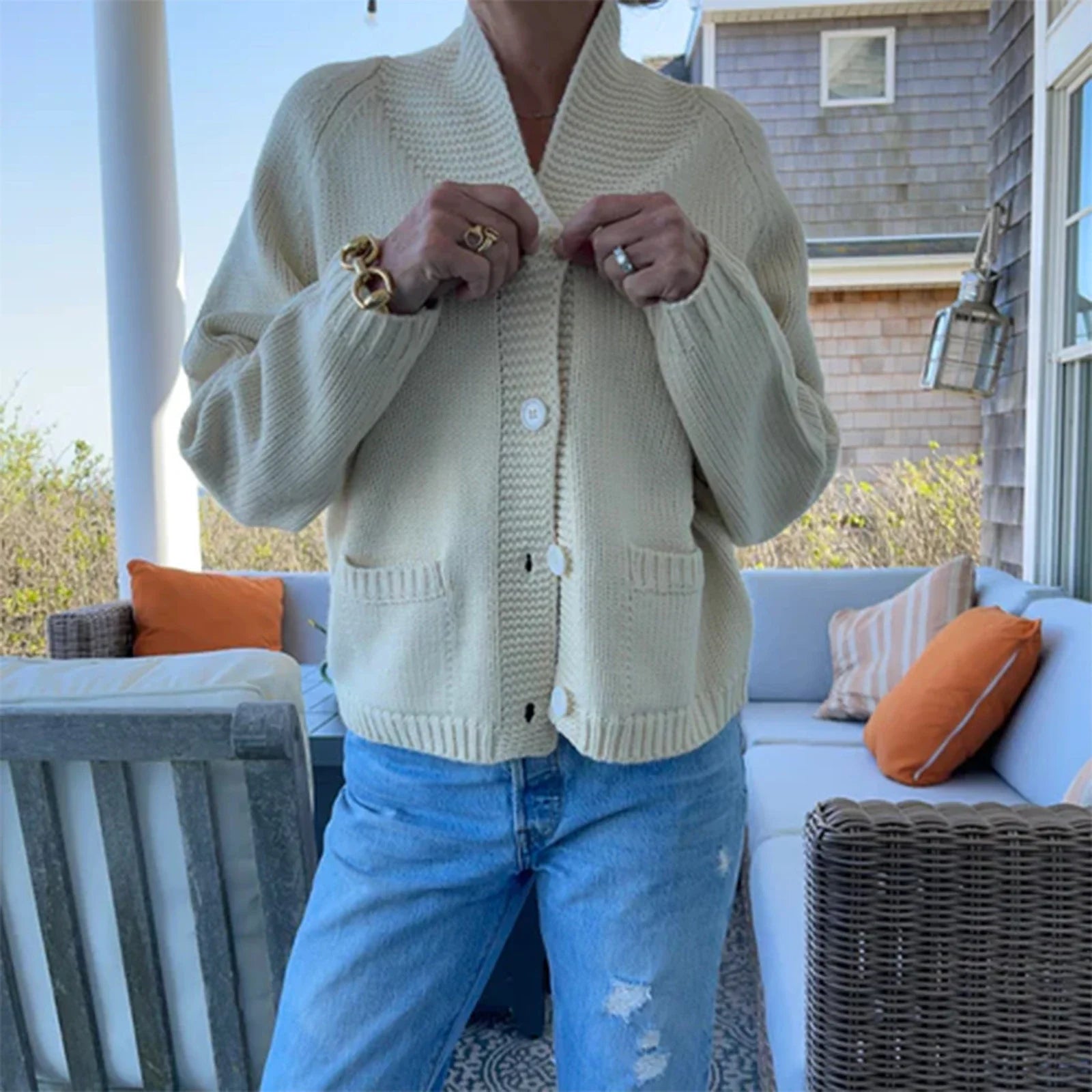 Crafted with a soft knit weave from 100% Acrylic material. this cardigan provides slight stretch and a comfortable loose fit. It boasts a regular clothing length. full-length regular sleeves. and standard thickness with regular yarn. ensuring warmth without bulk. The button decoration adds a classic touch to its high street style. making this cardigan a versatile and stylish choice.