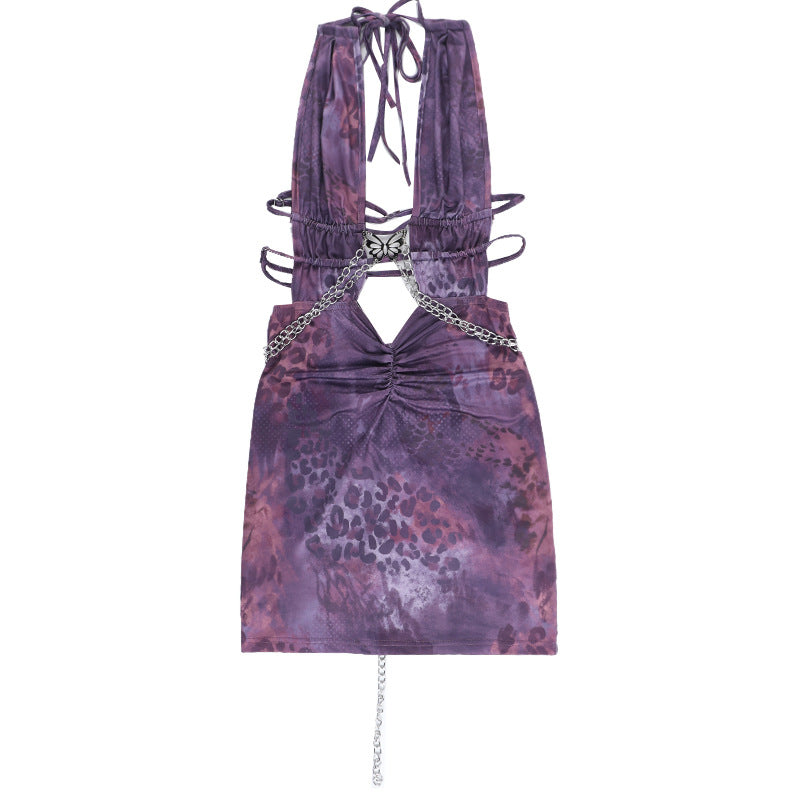 Animal Print Deep V Backless Hollow Hip Dress