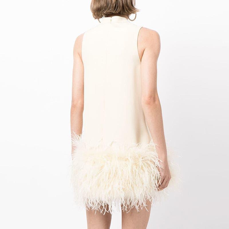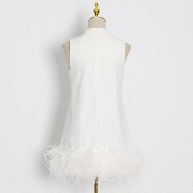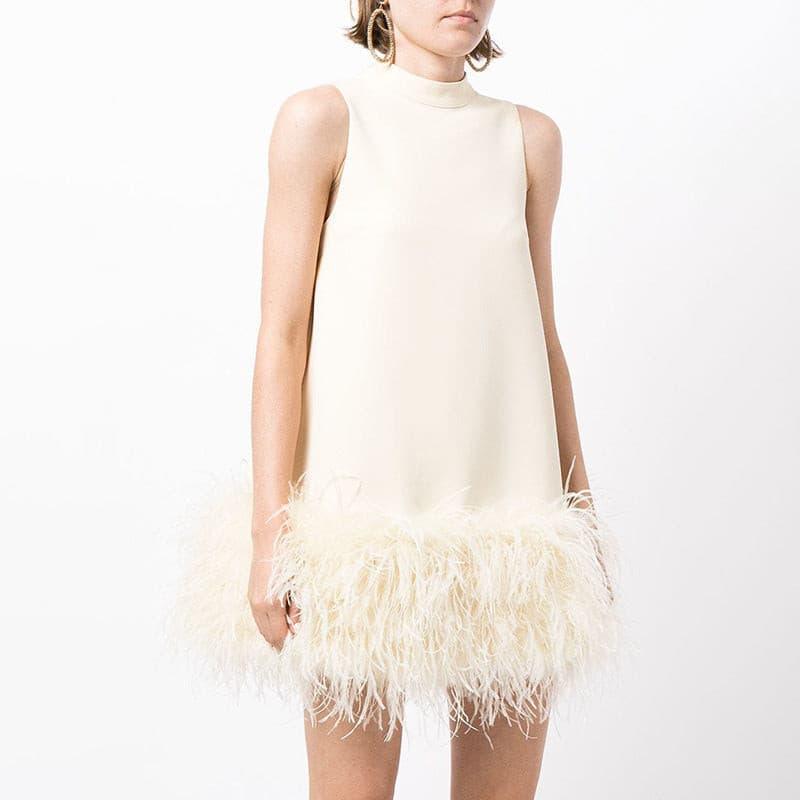 This elegant mini dress features a chic high collar and is made from soft. apricot-hued jersey fabric. The smooth and lightweight fabric allows air to pass through while still providing warmth and comfort. The design of the dress highlights its modern aesthetic. giving you a stylish look without compromising on comfort.