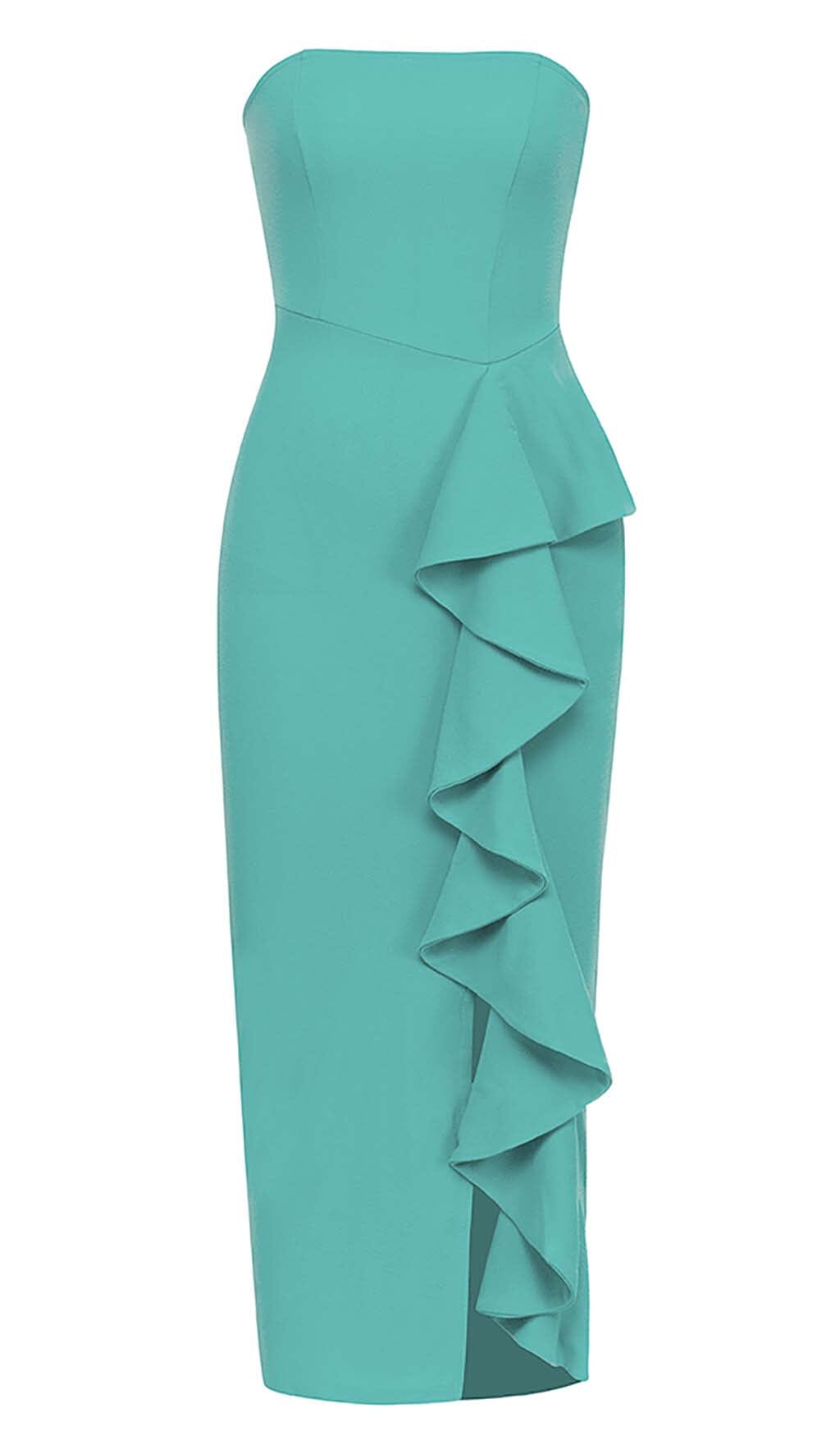BANDEAU RUFFLES MIDI DRESS IN GREEN