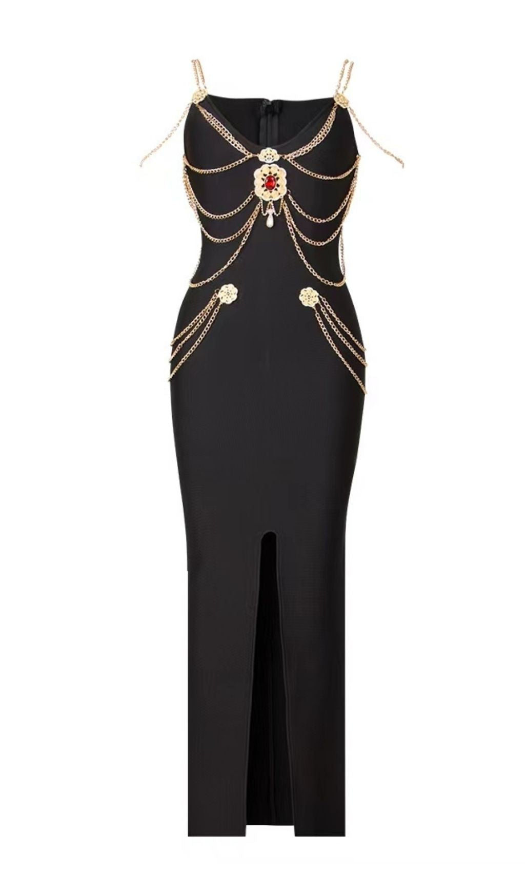 BANDAGE SWEETHEART SPLIT MAXI DRESS IN BLACK