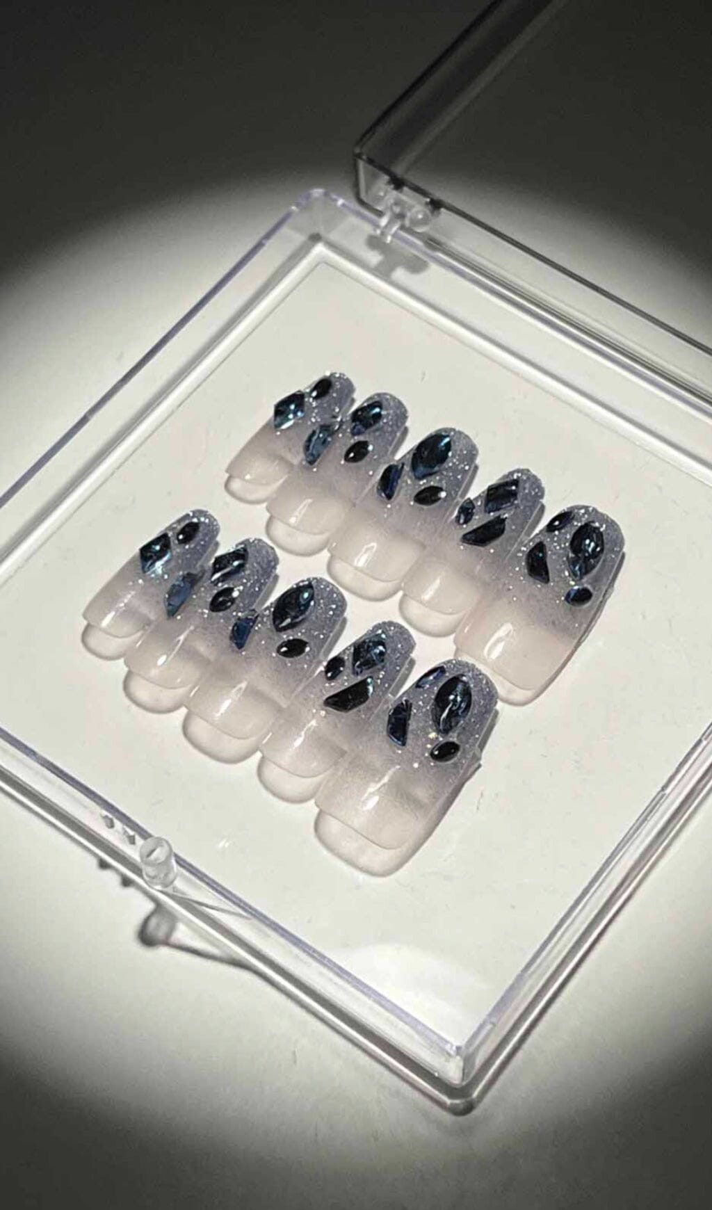 BLUE CRYSTAL GLITTER PRESS ON NAILS