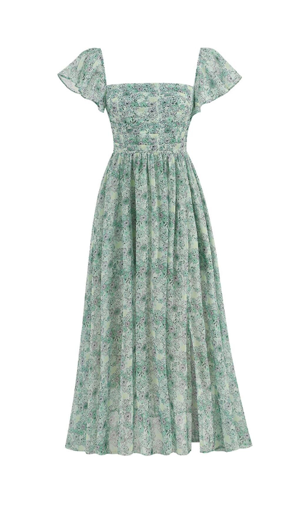 We are excited to offer our latest arrival. the FLORAL COLD SLEEVE MIDI DRESS IN GREEN. This fun and flirty dress is perfect for any occasion. from a day at the office to a night out on the tow