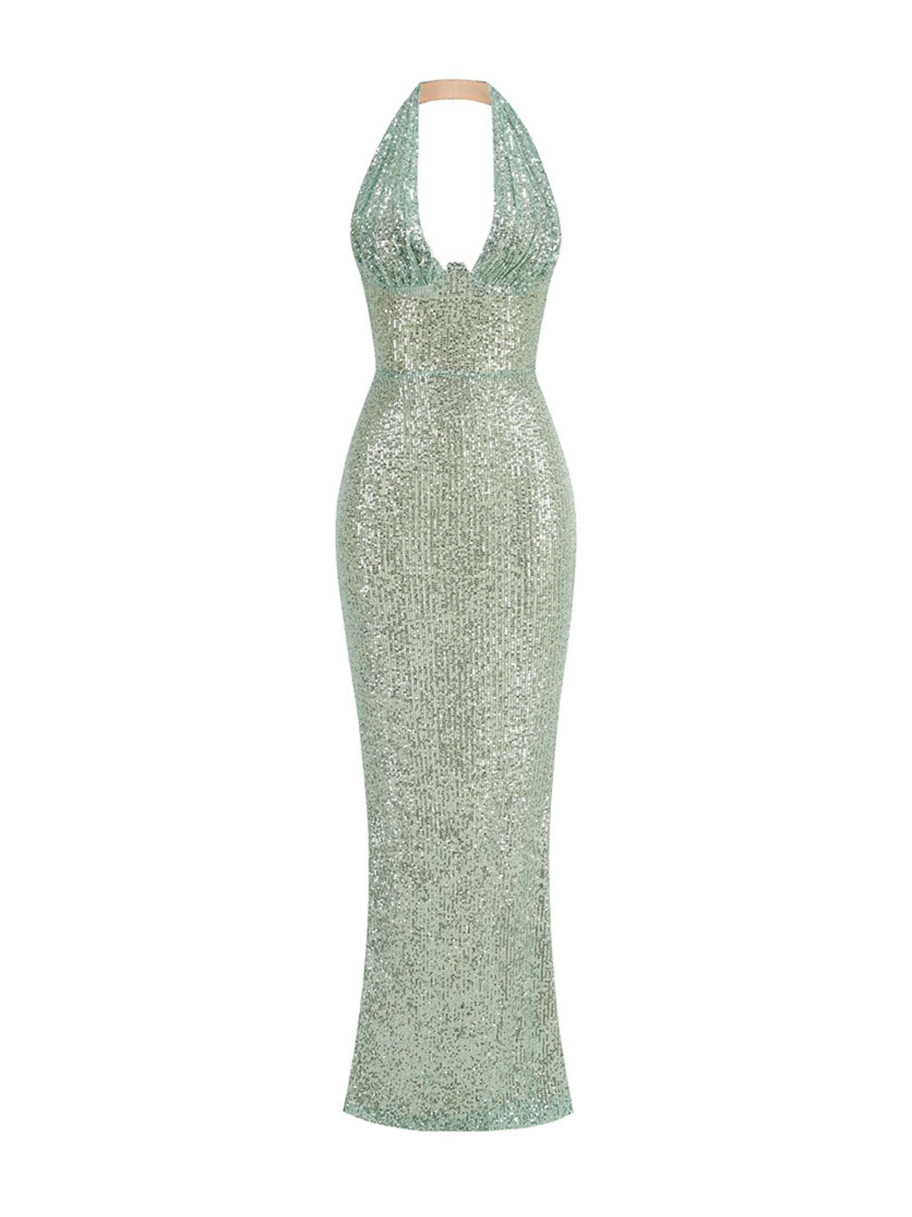 Be the ultimate good girl in our Calista Sequin Maxi Dress! This stunning halterneck dress in green features a high waist and slim fit for a figure-hugging look. The deep neck adds elegance and sexiness. making it the perfect choice for any evening event. From our Aesvs Evening Dresses Collection.