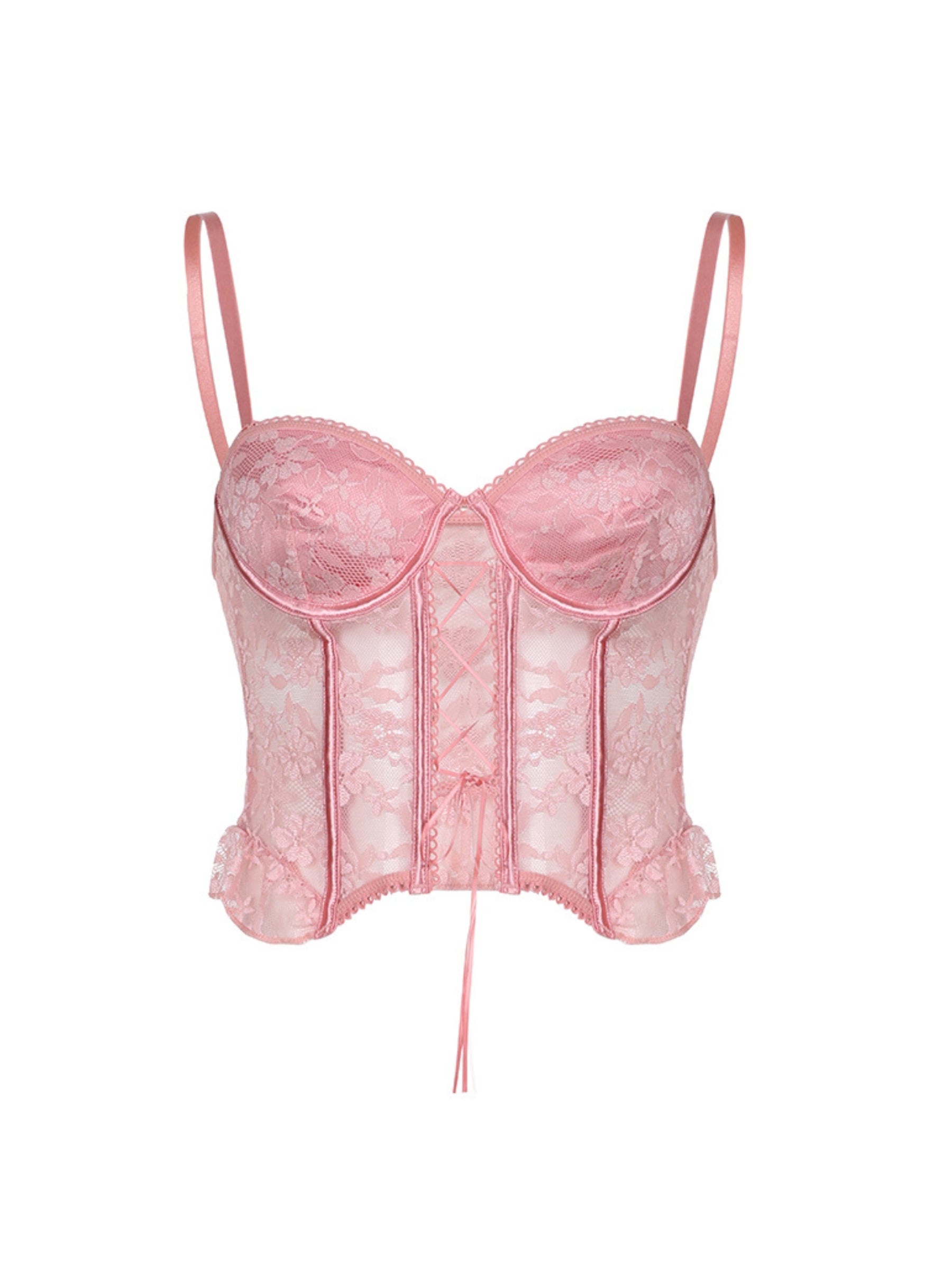 Elevate your good girl style with our Carlotta Lace Corset Top. This slim fitting top features adjustable spaghetti straps and a sultry mesh top. Trust us. this top is perfect for romantic dates and adding a touch of sexiness to any outfit. Part of our Aesvs Collection.