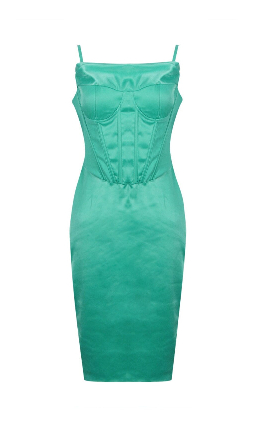 This is a great corset bodycon satin midi dress in green foliage print! It's perfect for a night out or a special event!
