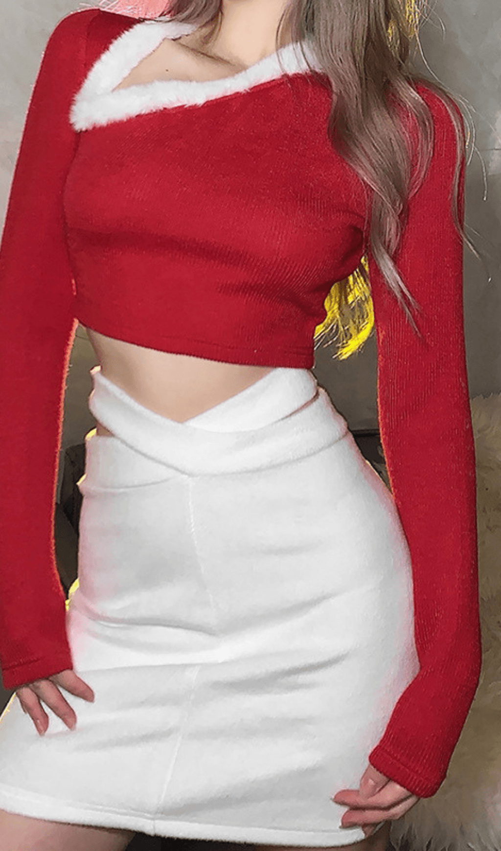 • Product design points:New fashion sexy slanted shoulder short hairy stitching and long sleeve knitting