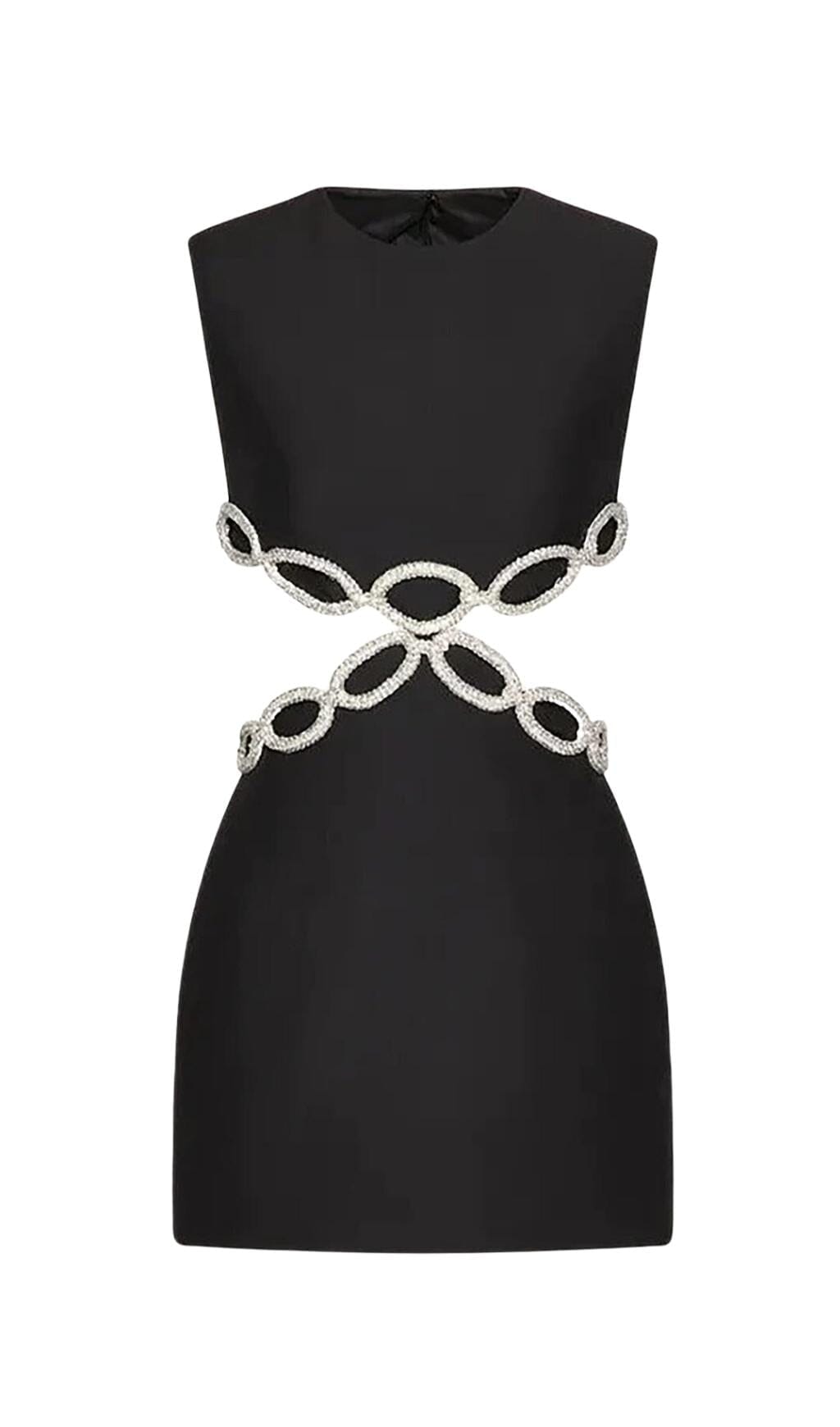 CRYSTAL EMBROIDERED SHORT BANDAGE DRESS
