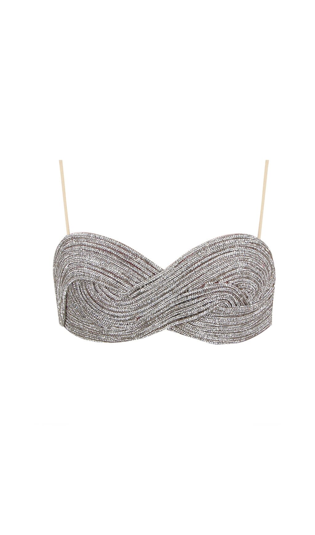 Sparkle and shine in this silver bandeau top adorned with beautiful crystals! Perfect for a night out or any special occasion.