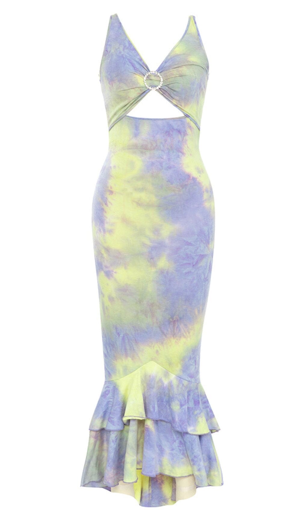 CUT OUT MERMAID HEM DRESS IN MULTI COLOR