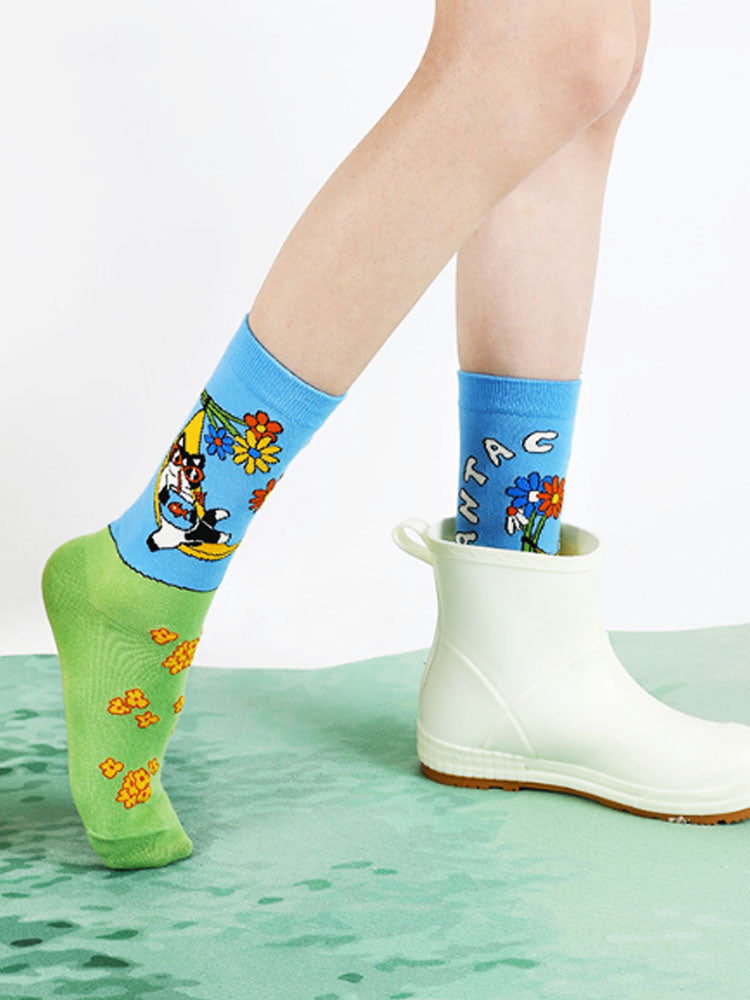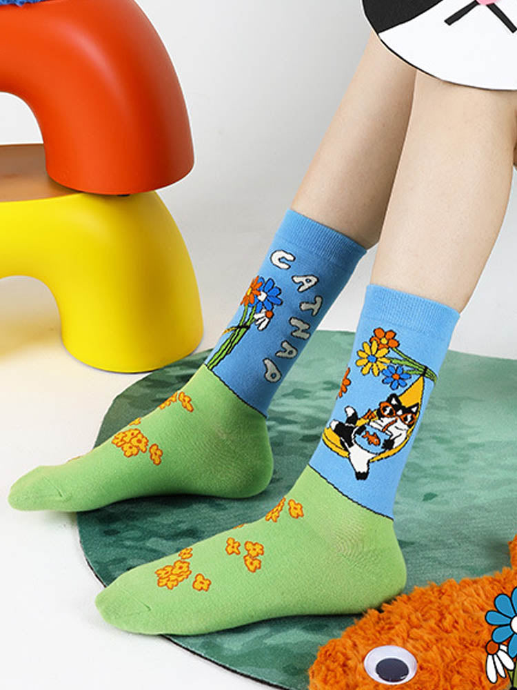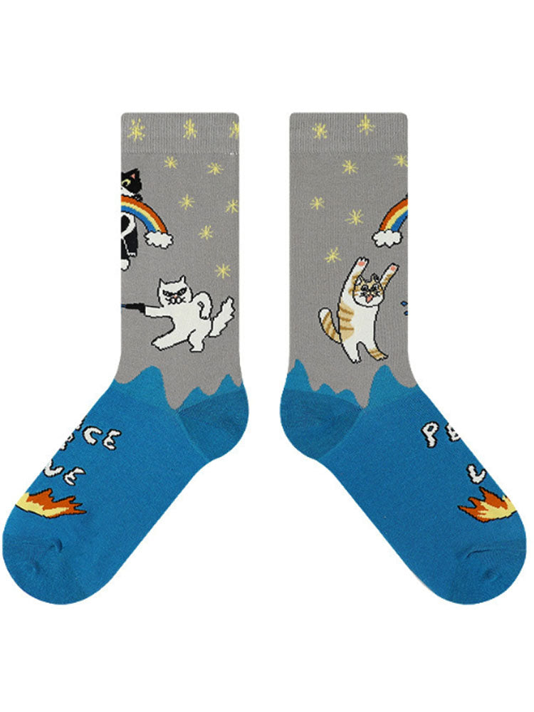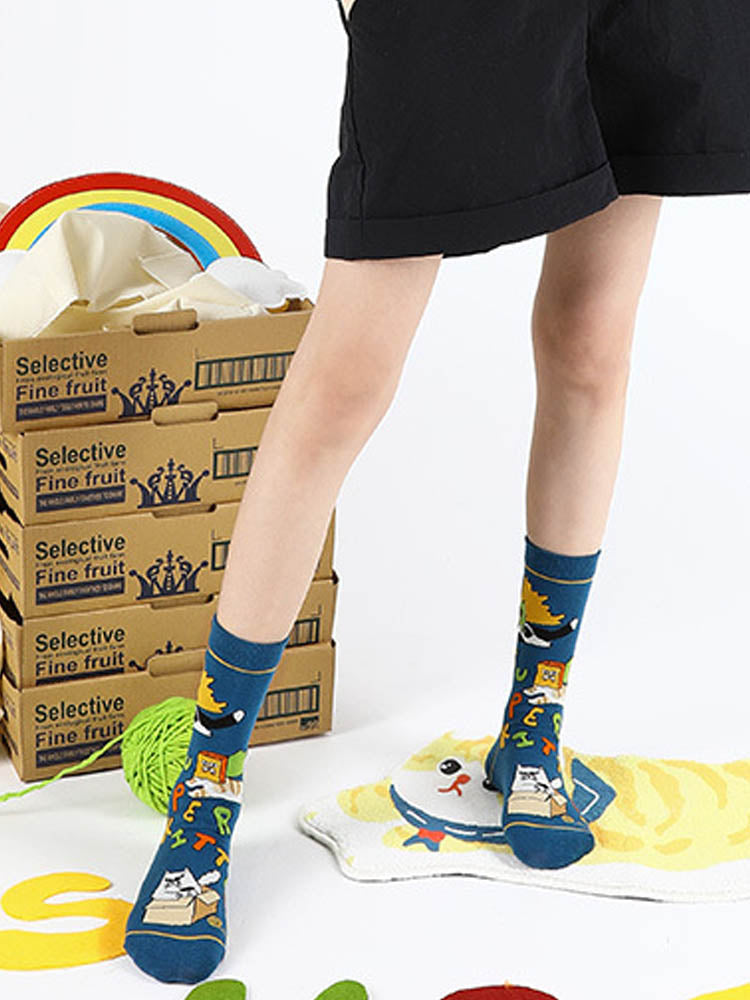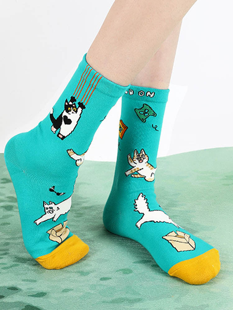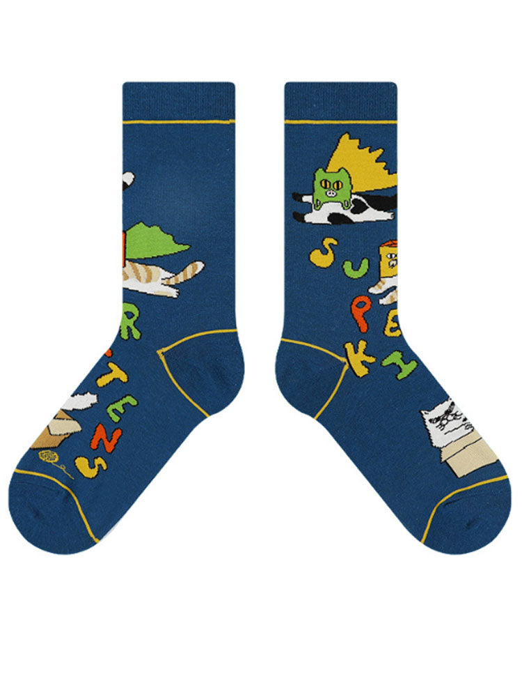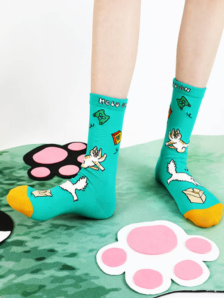 Step into adorable charm with our Cute Cartoon Meow Meow Mid-Calf Socks. Featuring delightful cartoon cat designs. these mid-calf socks add a playful touch to your outfit. Crafted from soft and breathable material. they offer comfort and style for everyday wear. Whether you're lounging at home or out for a casual day. these socks are the perfect accessory for cat lovers. Treat yourself to the cuteness of our Cartoon Meow Meow Mid-Calf Socks and let your feet express your love for feline friends!