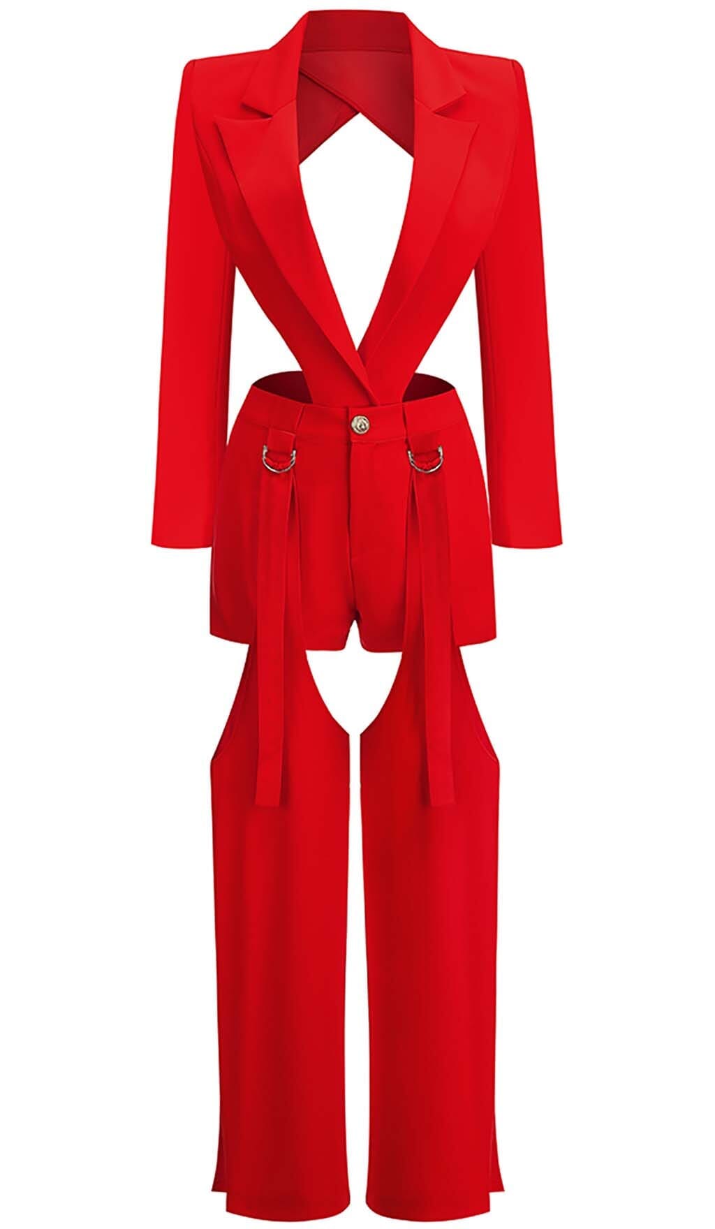CUTOUT BACKLESS THREE PIECE SET IN RED