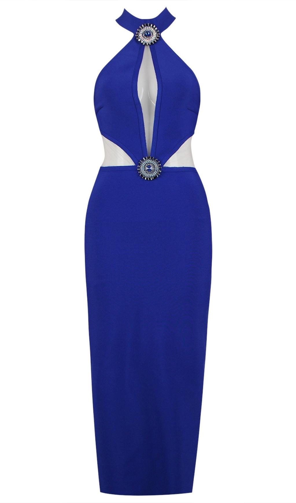 CUTOUT HALTER DRESS IN BLUE