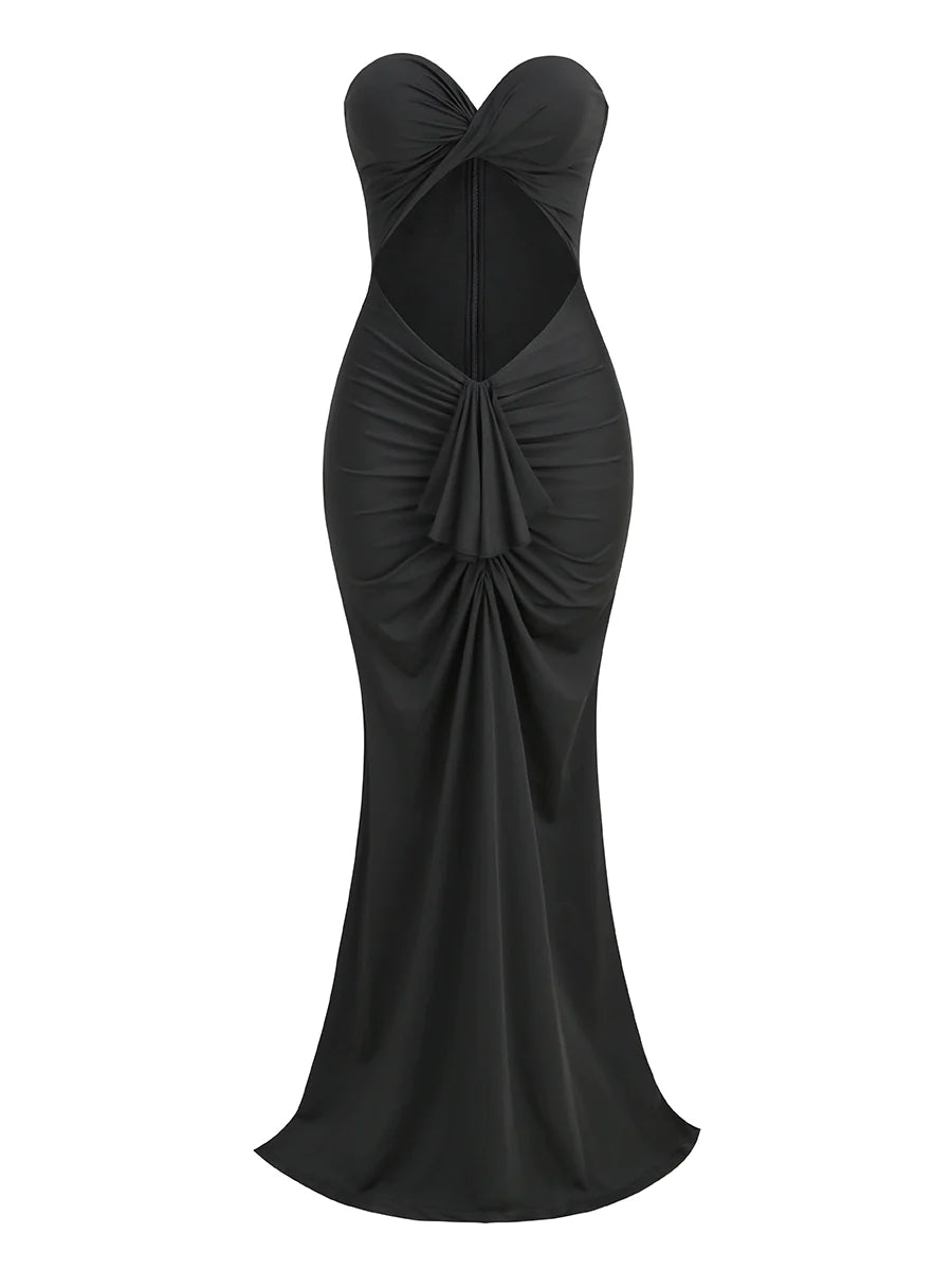 Be the life of the party with the Darcy Fishtail Maxi Dress in Black from Aesvs. This celebrity-inspired dress features a strapless. sleeveless design with a heart-shaped neckline. The unique hollow out. cut-out design adds a playful touch to this must-have piece from the 'Party & Coctail' Collection (perfect for birthdays!).