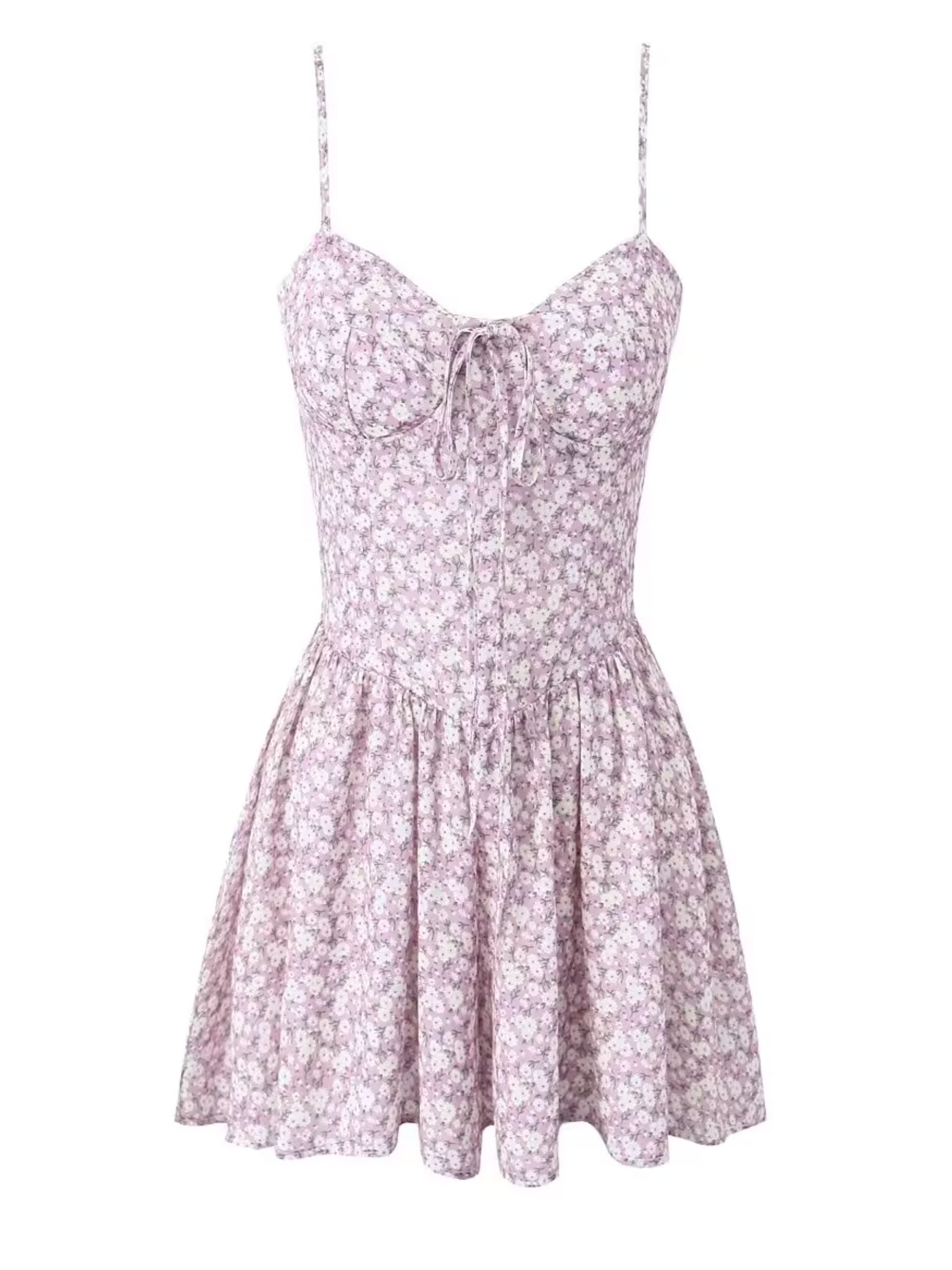 The Deanna Floral Mini Dress in Purple features a romantic and sexy look with its sleeveless. high waist pleated mini skirt and A-line silhouette. Perfect for summer. this dress from the Aesvs Summer in Bloom Collection is sure to make you feel confident and stylish.