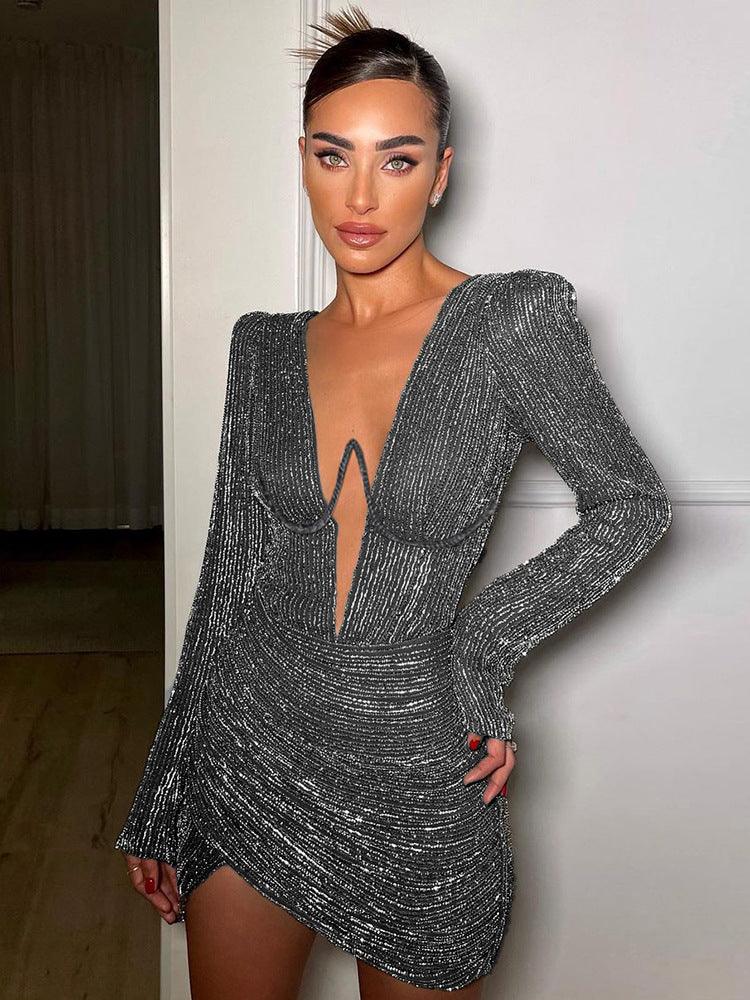 This stylish minimalistic dress is perfect for both formal and casual occasions. Made of lightweight cotton. it features a deep v-neckline and steel ring chest details. and is designed to flatter the figure. Its relaxed silhouette ensures maximum comfort and flexibility. Perfect for any season. it's sure to elevate any wardrobe.