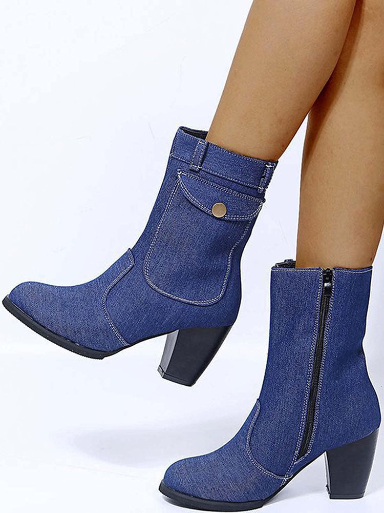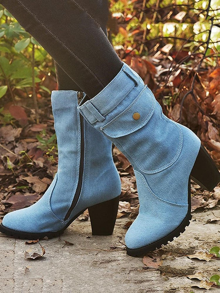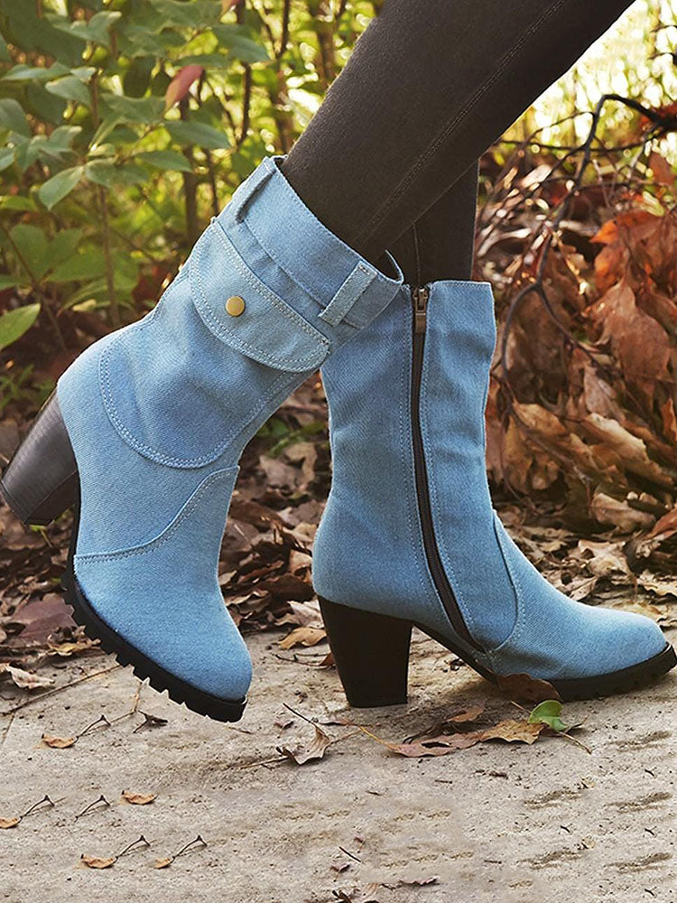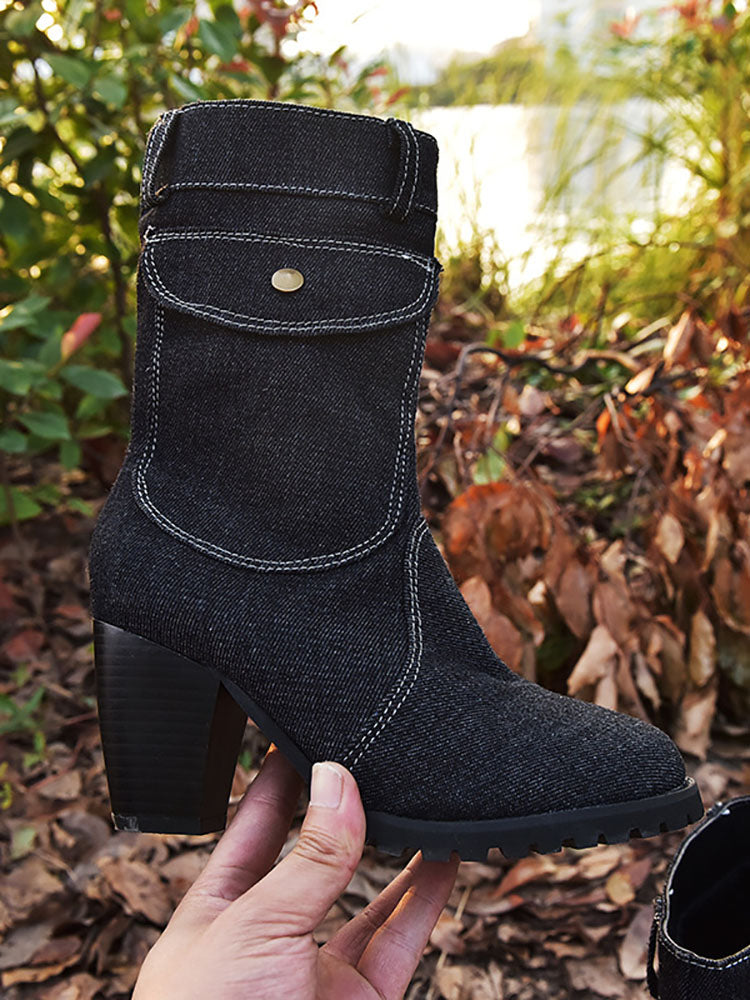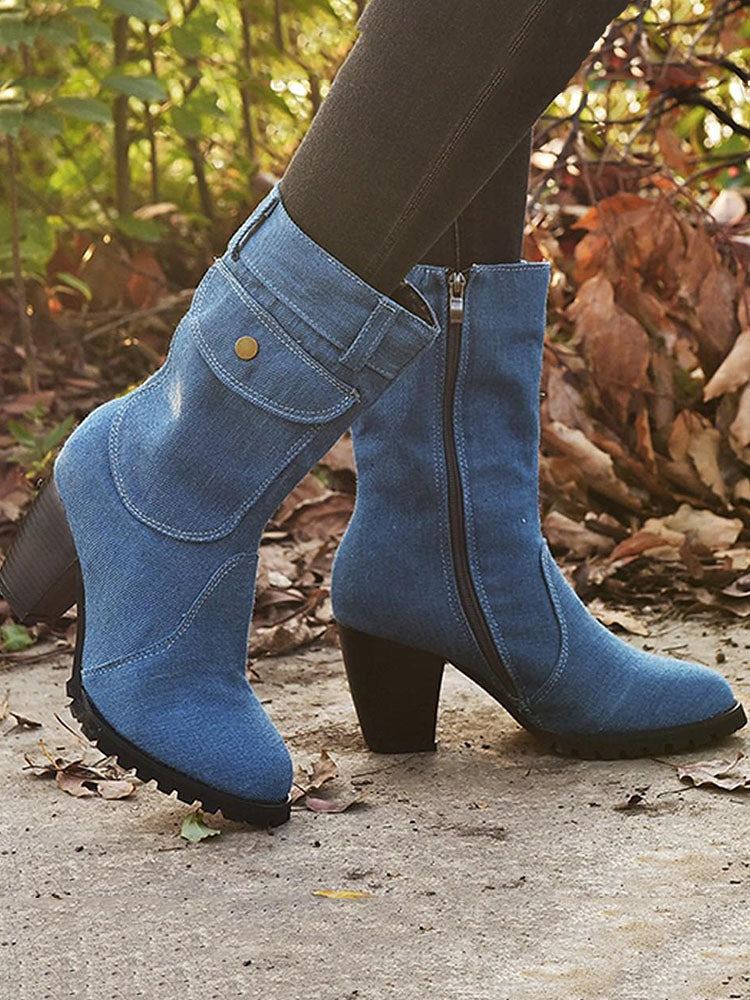Denim Chunky Heel Boots