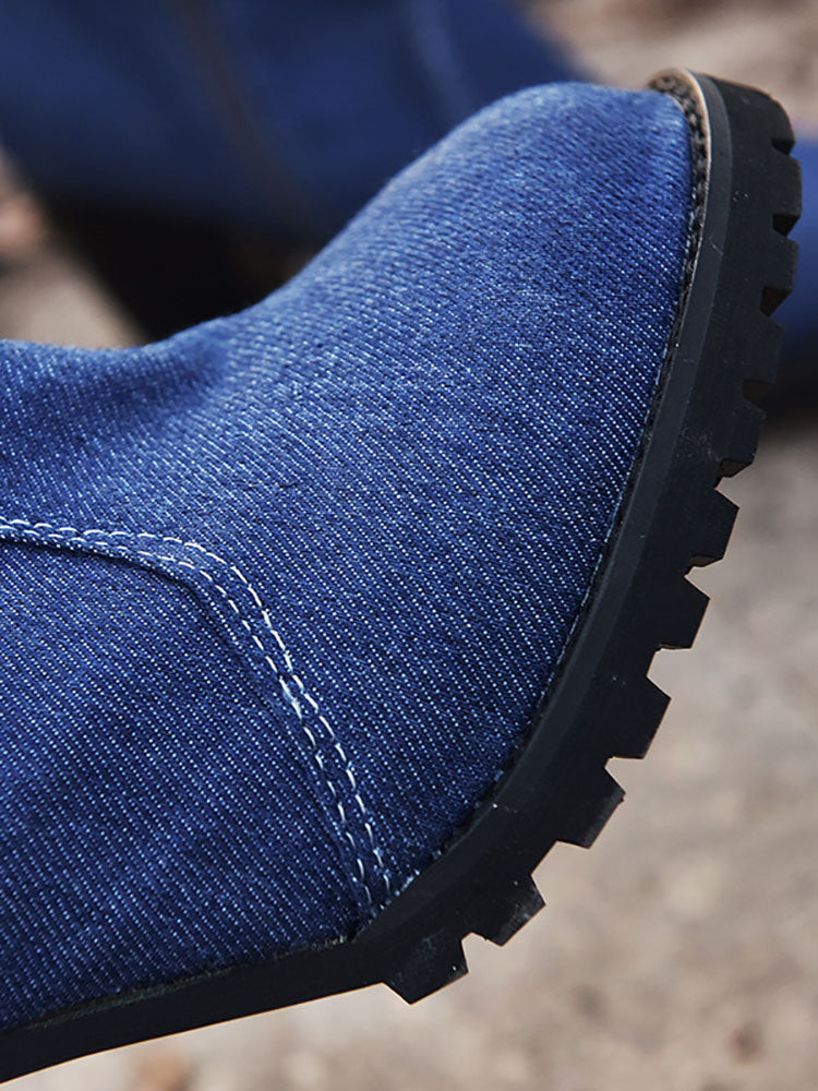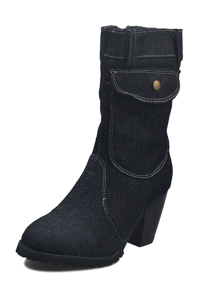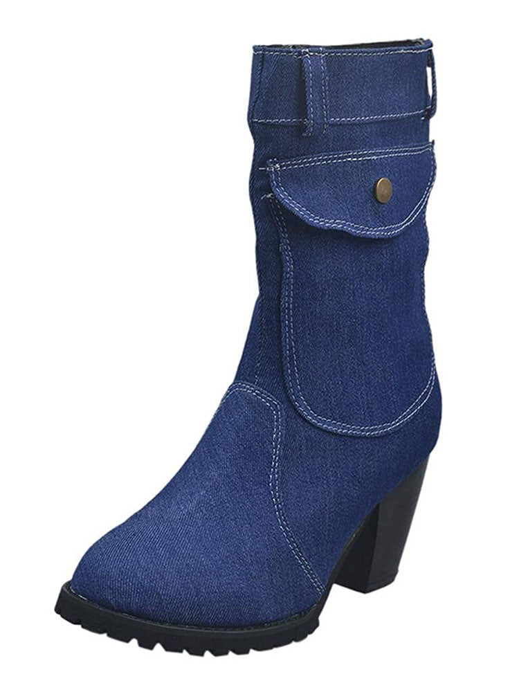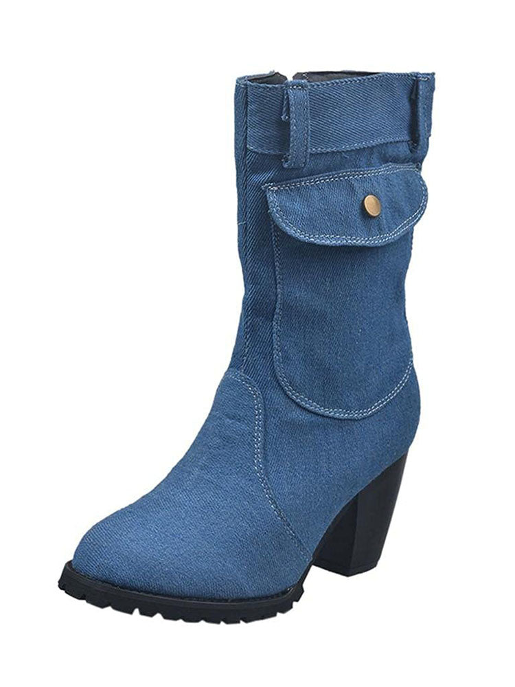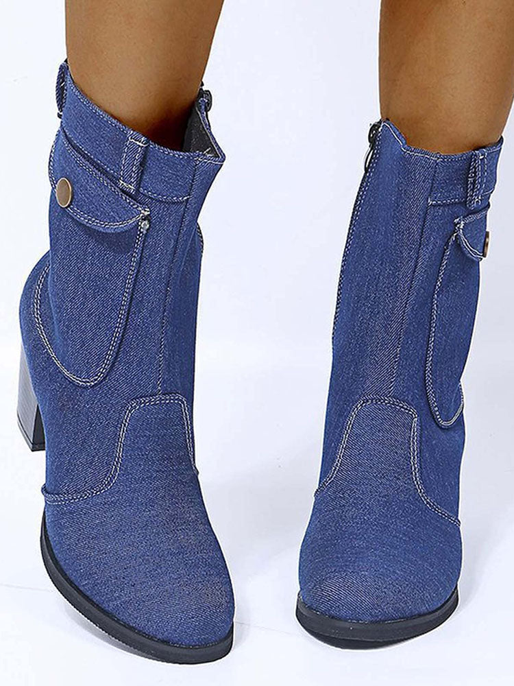 Denim Chunky Heel Boots