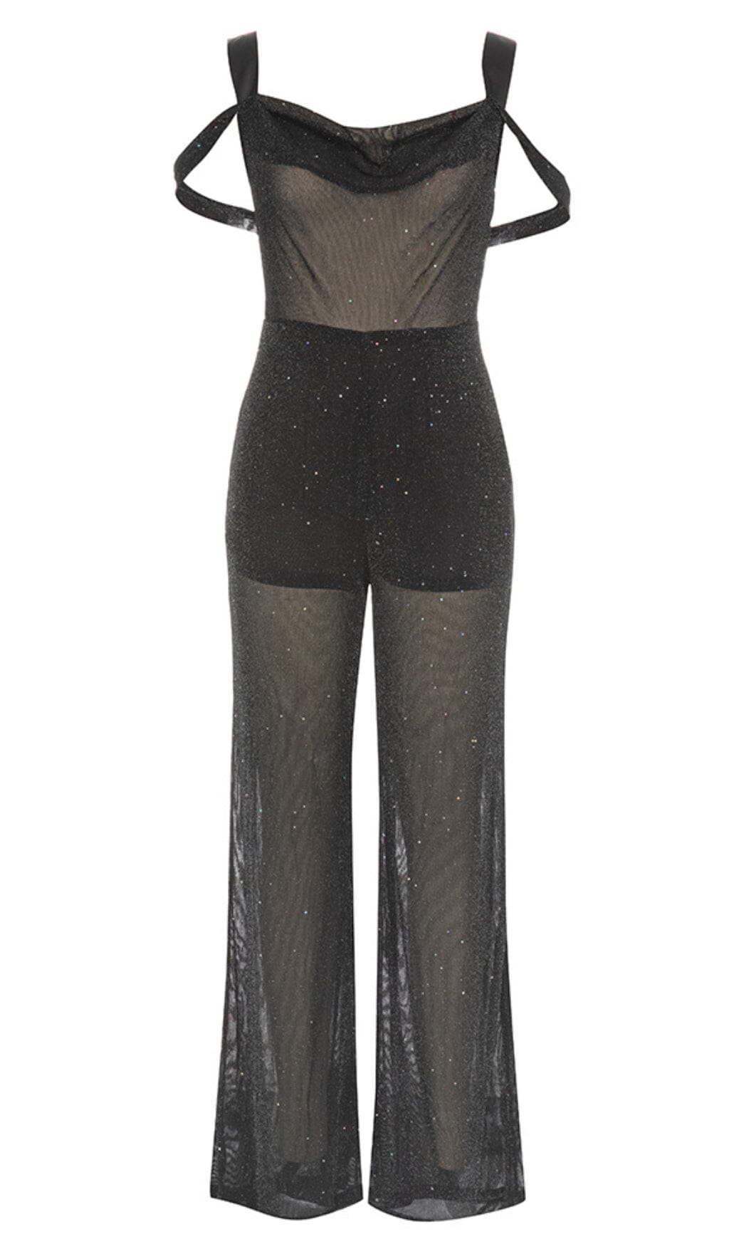 DIAMANTE MESH JUMPSUIT IN BLACK