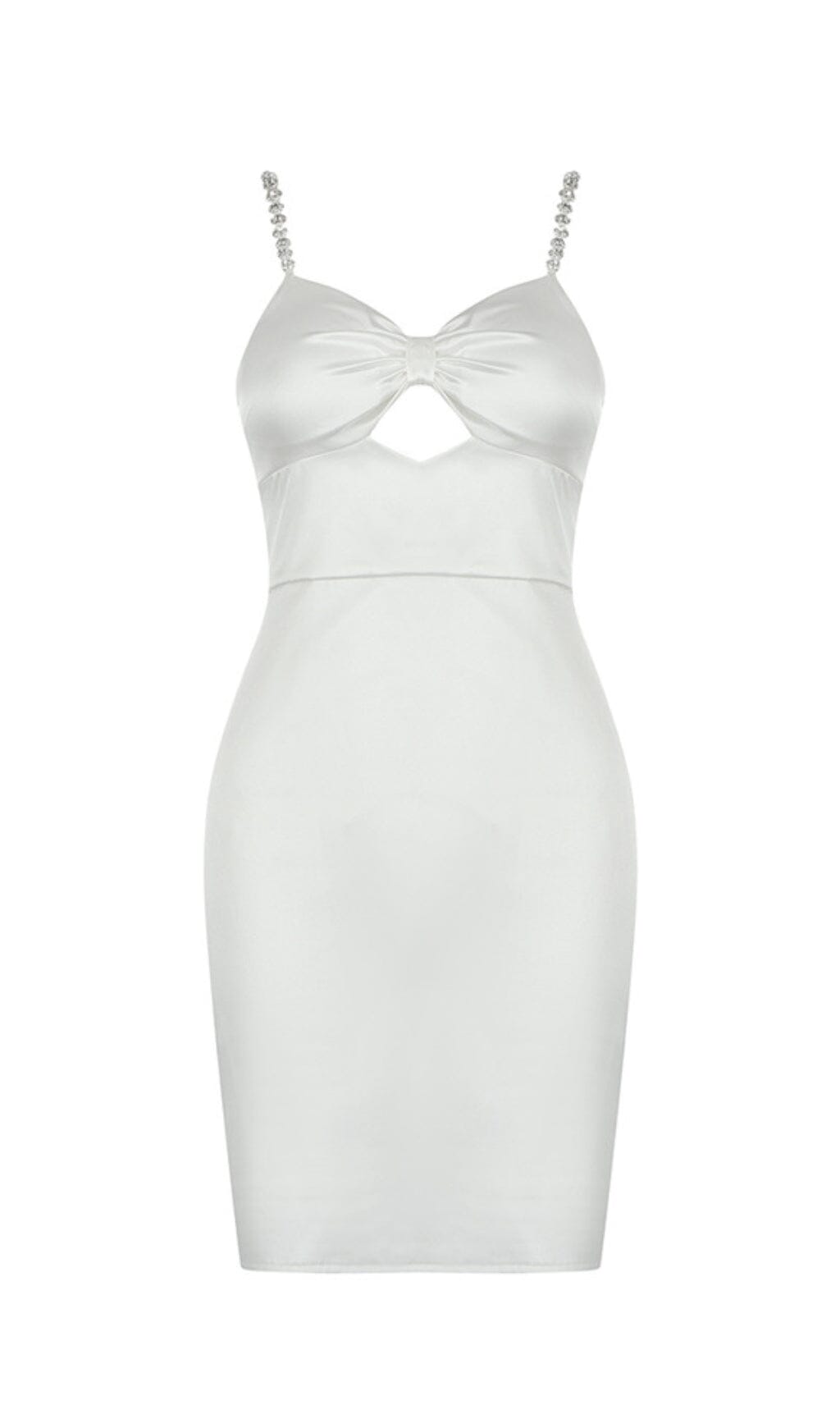 DIAMOND SUSPENDER BOW SLIM DRESS IN WHITE