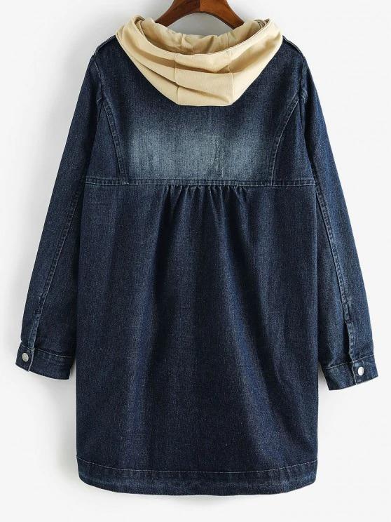 Style: Fashion Occasions: Daily Clothes Type: Long Coat Material: Cotton.Polyester.Polyurethane Type: Wide-waisted Length: Long Sleeves Length: Full Collar: Hooded Closure Type: Single Breasted Pattern Type: Others Decoration: Pockets.Ripped Wash: Dark Wash Material Stretch: No Stretch With Belt: No Seasons: Autumn.Spring Weight: 0.9000kg Package: 1 x Coat