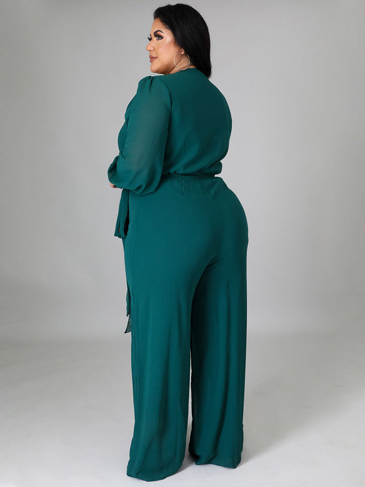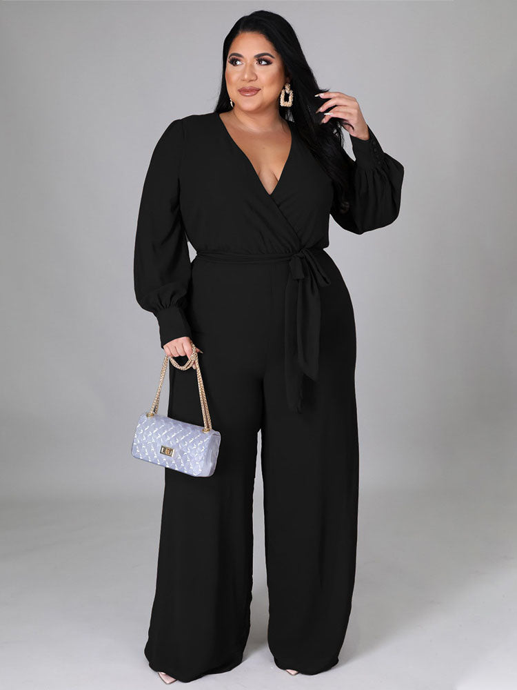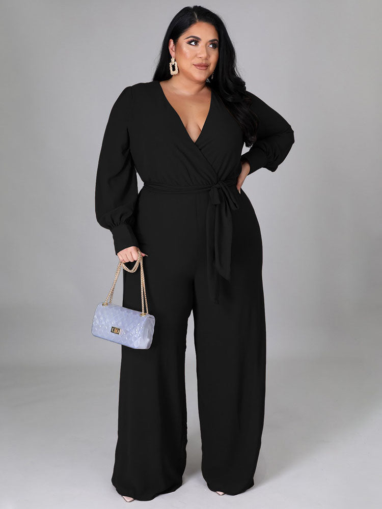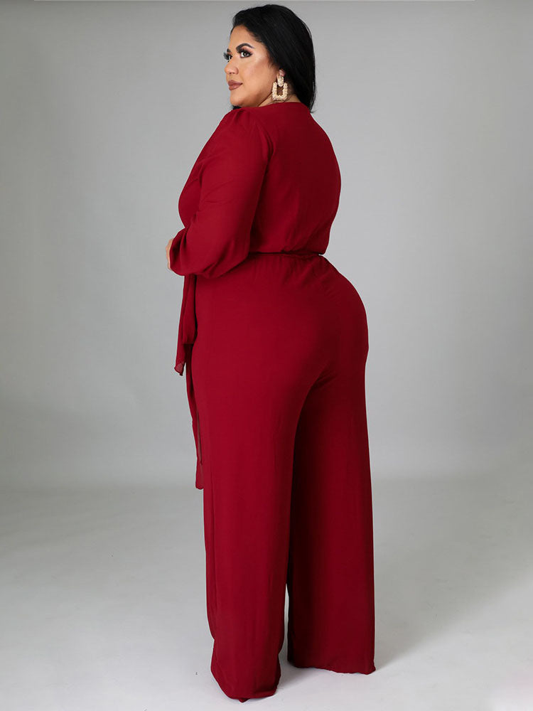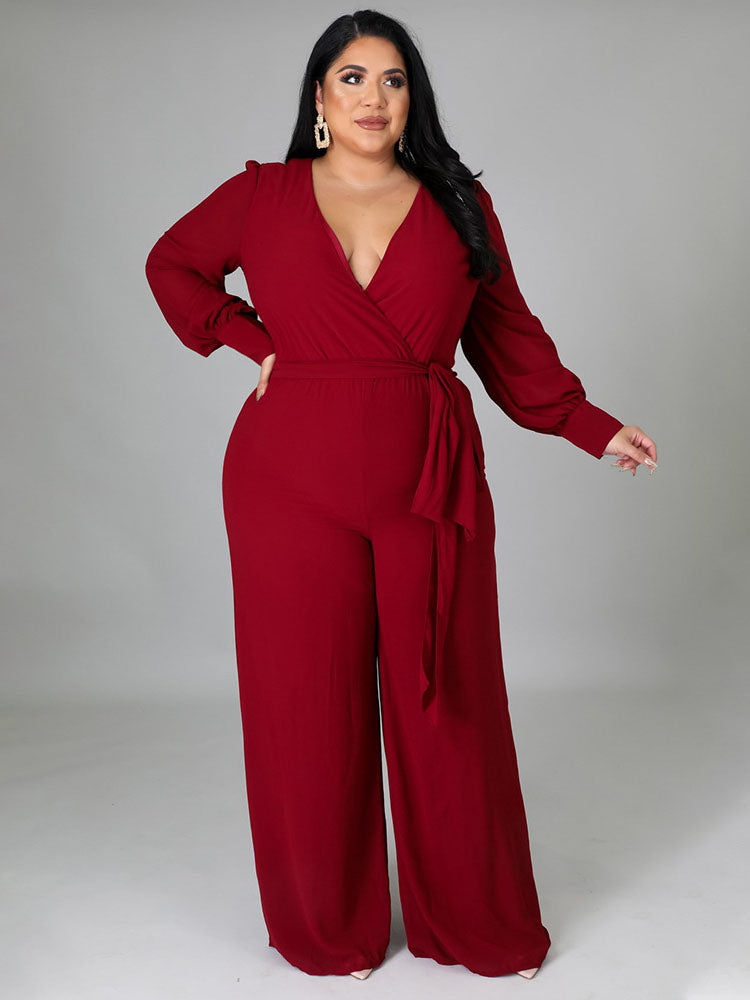 Elegant V Neck Wrap Jumpsuit