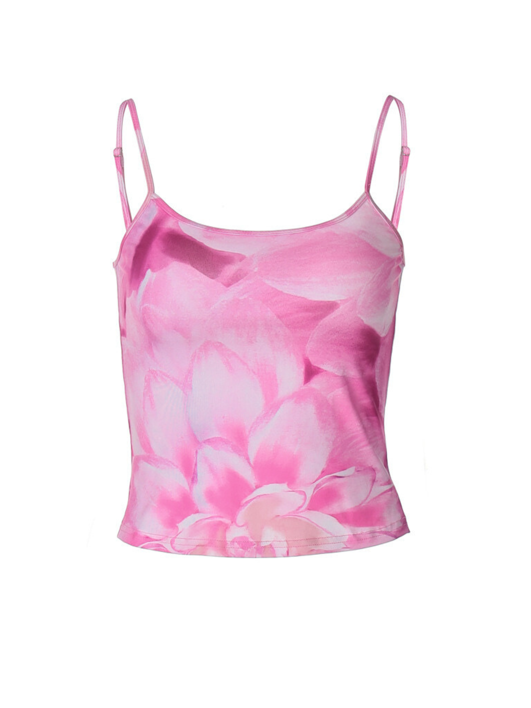 The Elise Floral Cami Top is the ultimate Y2K dream with a modern twist. Designed with a soft mesh fabric that hugs the body. this top features a dreamy oversized lotus flower print in vibrant pink and pastel tones. The slim straps and sleek silhouette make it perfect for layering or wearing solo with low-rise pants or a mini skirt.
