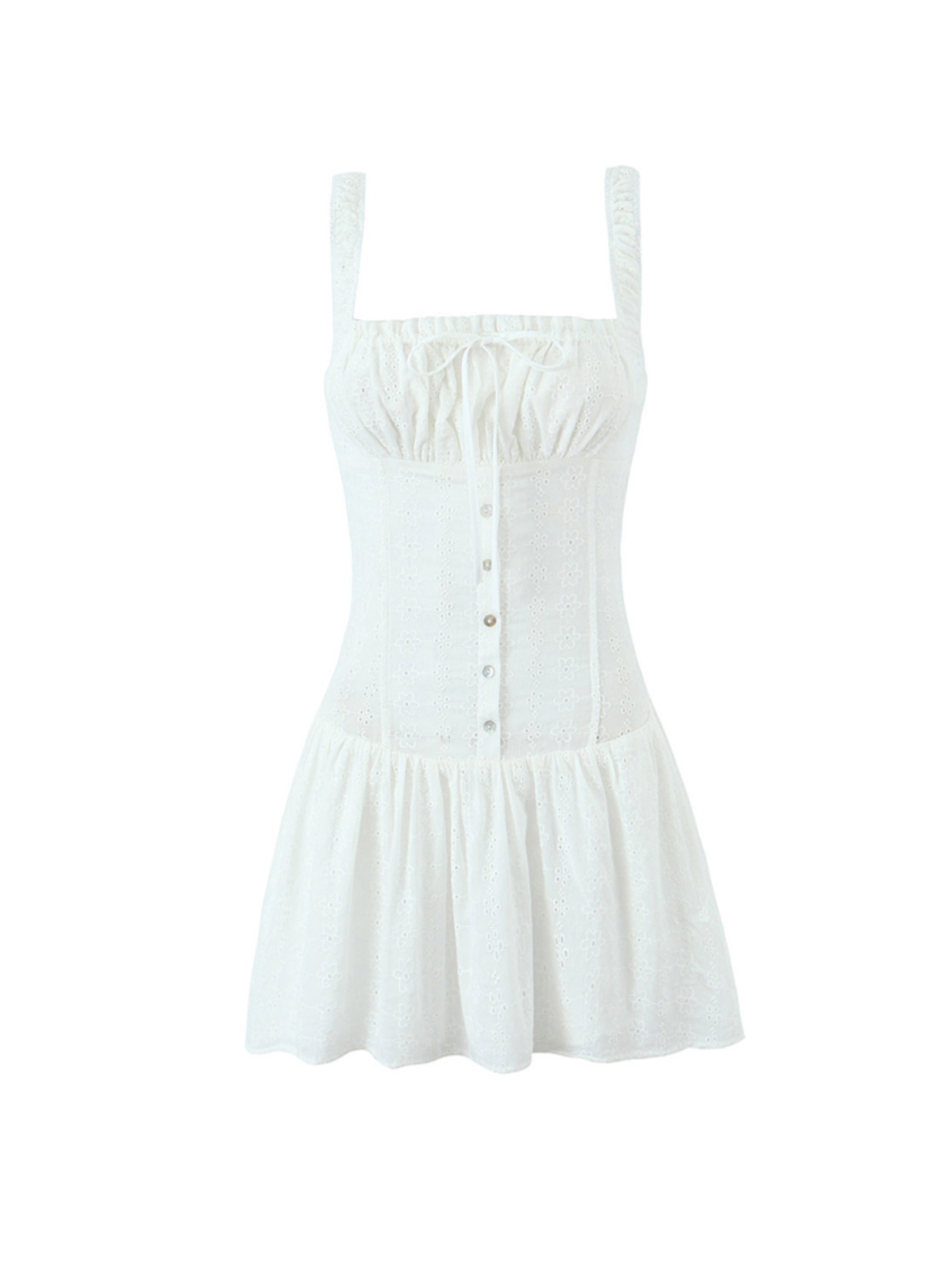 The Estella Lace Mini Dress is an enchanting piece that blends delicate craftsmanship with a playful silhouette. Designed for the modern woman who cherishes both elegance and comfort. this dress features intricate lace detailing that adds a touch of vintage charm. The fitted bodice. accented with subtle buttons. creates a flattering shape. while the softly flared skirt offers a breezy feel. Perfect for summer outings or special occasions. the Estella Lace Mini Dress ensures you stand out with grace and style.
