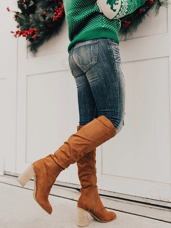 Faux Suede Chunky Heel Boots
