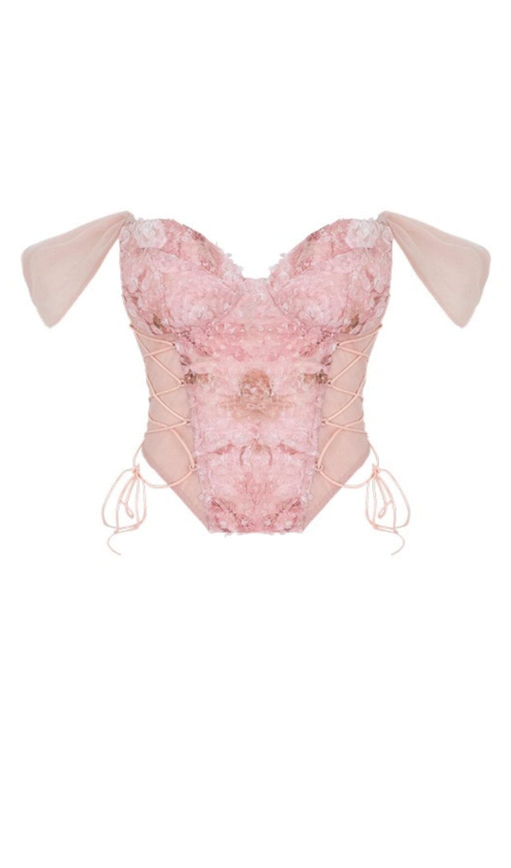 FLORAL EMBROIDERY LACE UP CORSET TOP