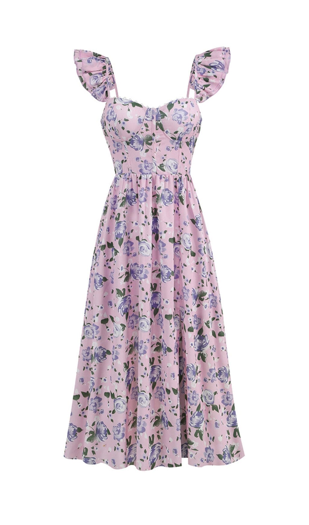 FLORAL-PRINT CORSET MIDI DRESS IN BLUSH OF A ROSE