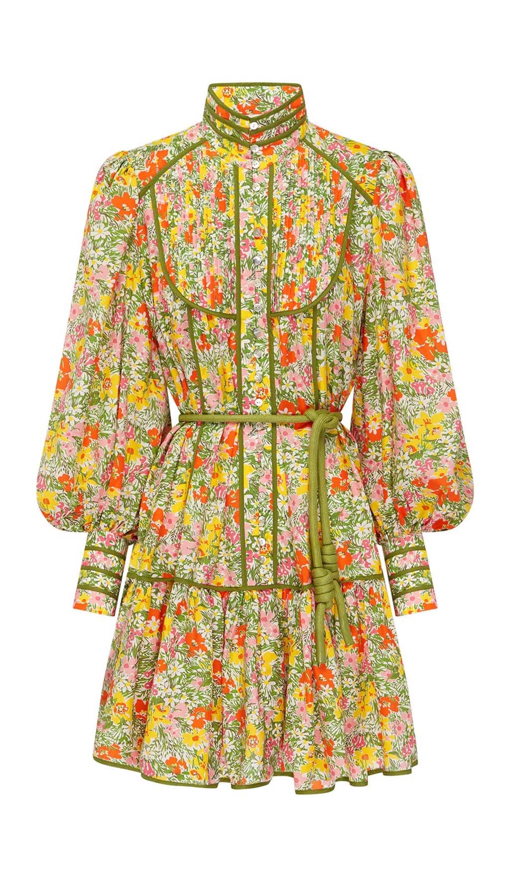 FLORAL PRINT LACE-UP MIDI DRESS IN AUTUMN LEAVES