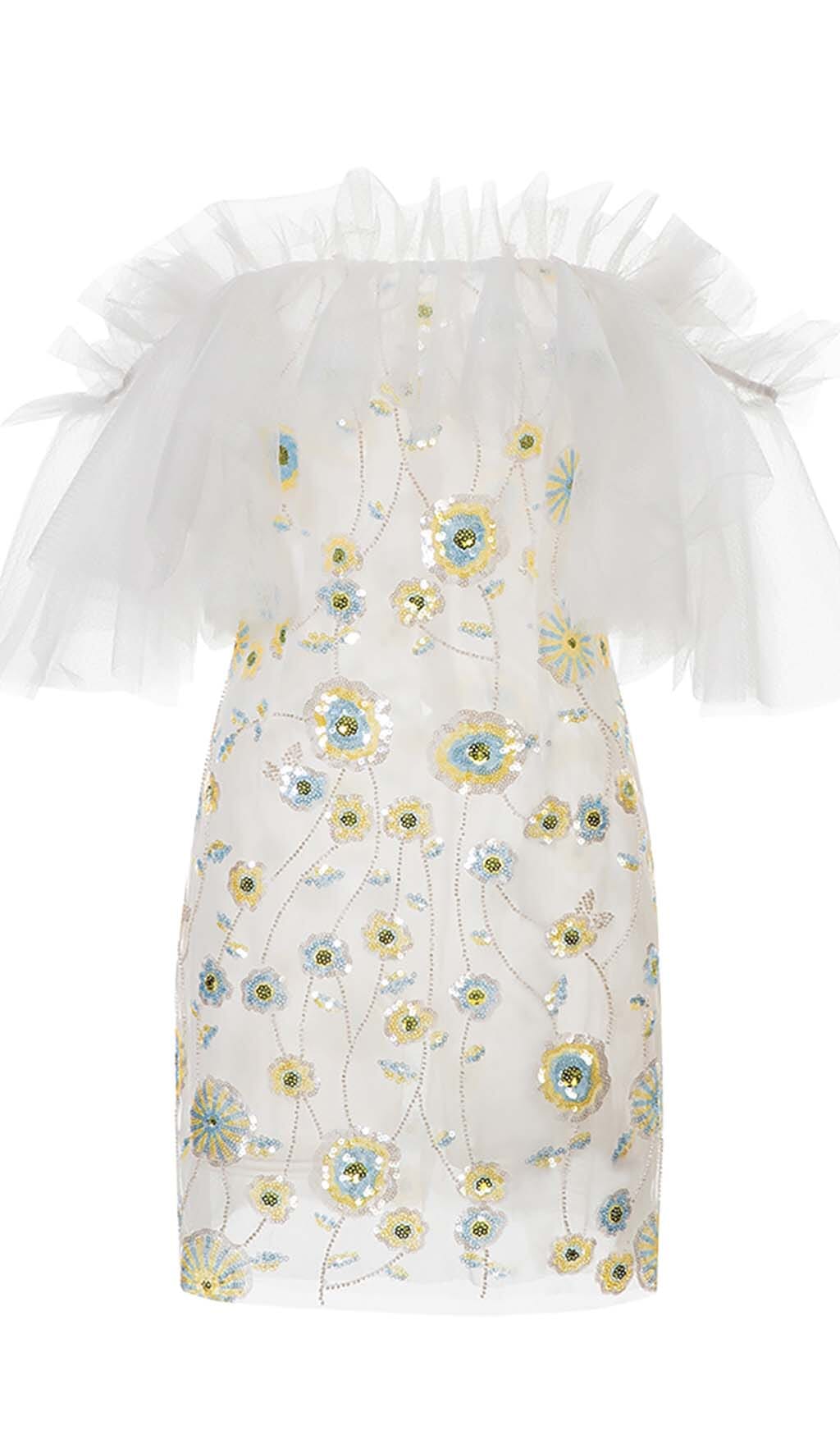 FLORAL SEQUINED MINI DRESS IN WHITE