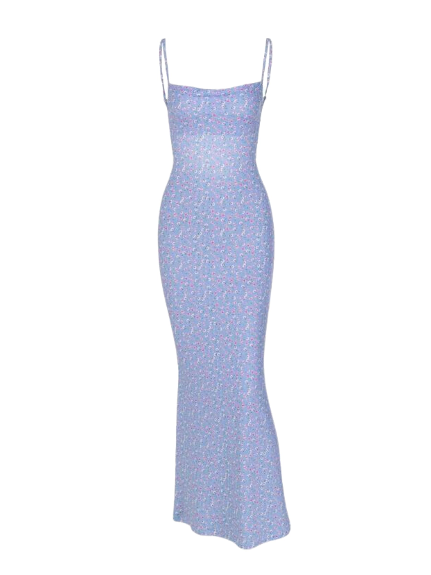 Make them blush with the Gisel Backless Floral Maxi Dress from Aesvs' Summer's in Bloom collection. This dreamy dress will make you the life of the party with its unbeatable figure-hugging bodycon fit and romantic backless design. The pretty purple floral print and spaghetti straps will have heads turning like daisies in the wind! Let your inner flower child bloom as you move through the room.
