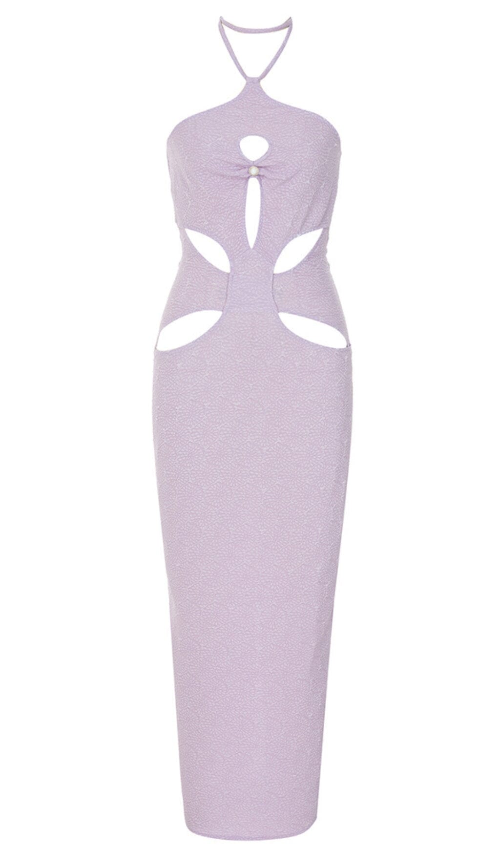 The Halter Cut-Out Midi Dress in Purple is perfect for making a statement at a special occasion. Its vibrant purple color. figure-hugging silhouette. and cut-out detailing create a sexy and stylish look. Crafted from high-quality materials. this dress is comfortable and durable. and it's available in different sizes to suit various body types. Pair it with your favorite heels and accessories. and get ready to turn heads at your next event.
