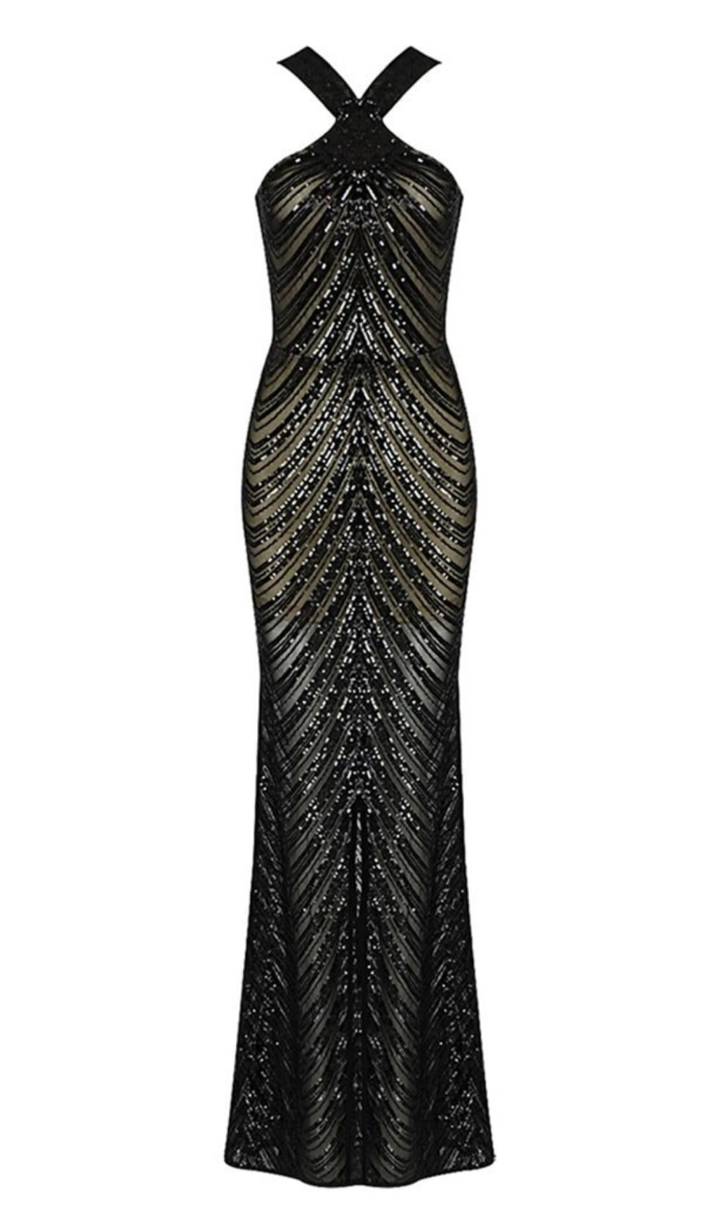HALTER SEQUIN MAXI DRESS IN BLACK