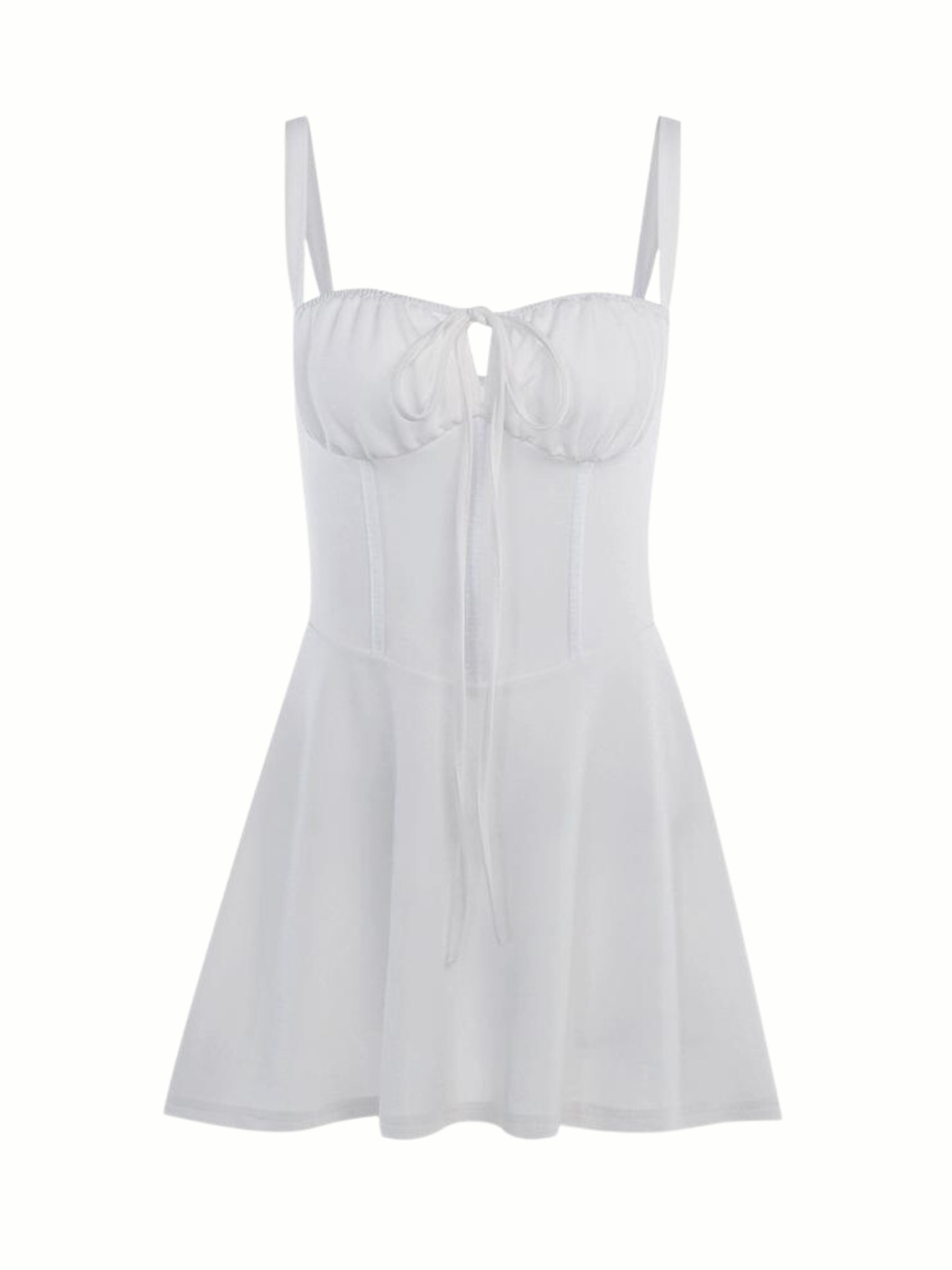 The Hazel Corset Mini Dress in White is ideal for any occasion. It's sexy. yet romantic and cute. with a drawstring chest. A-Line silhouette. and corset style. Perfect for a day out or a night on the town. this dress from Aesvs will transform your look from day to night in a snap!
