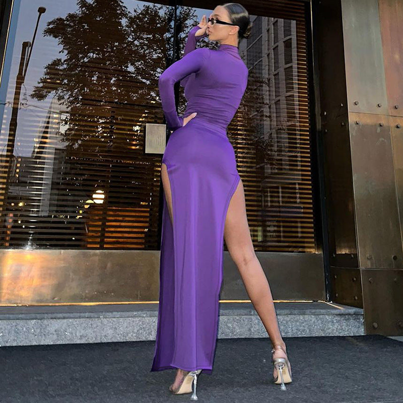 Elevate your look with our High Neck Long Sleeve Slim Slit Dress. This dress features a high neckline and long sleeves. adding a touch of sophistication. The slim fit and slit detail create a flattering silhouette to make you stand out from the crowd. Perfect for any special occasion.