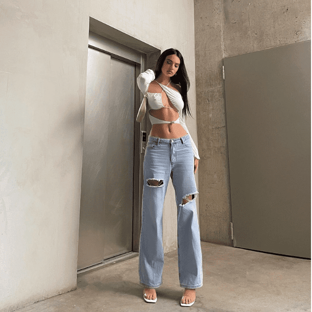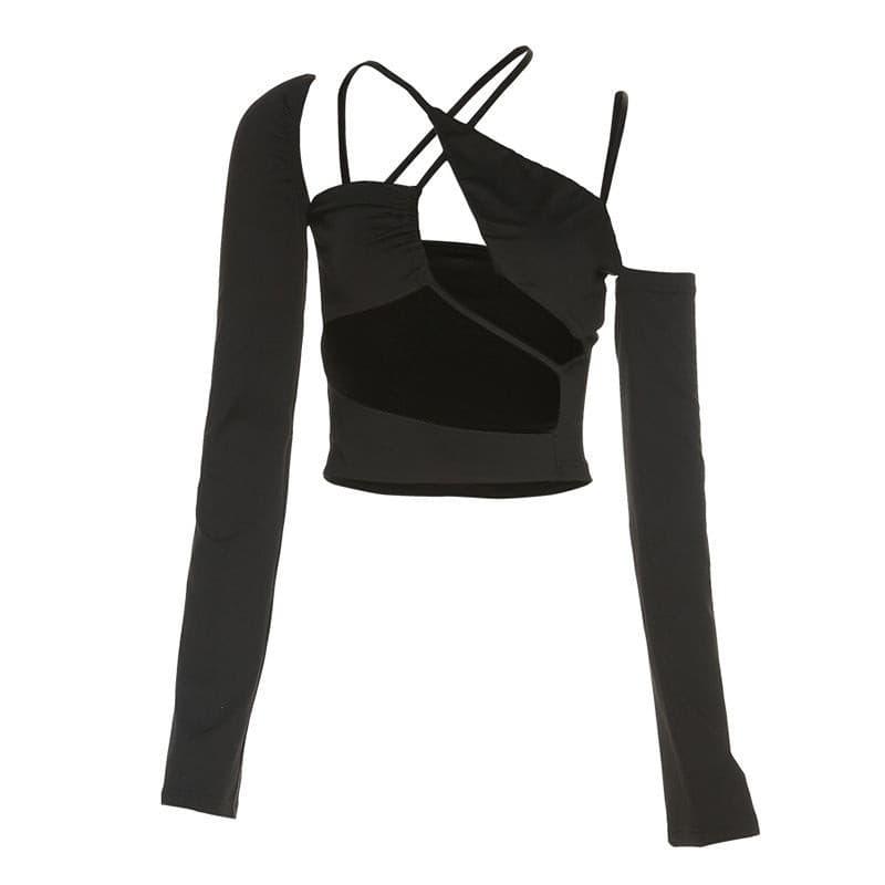 Hollow one-shoulder long-sleeved top
