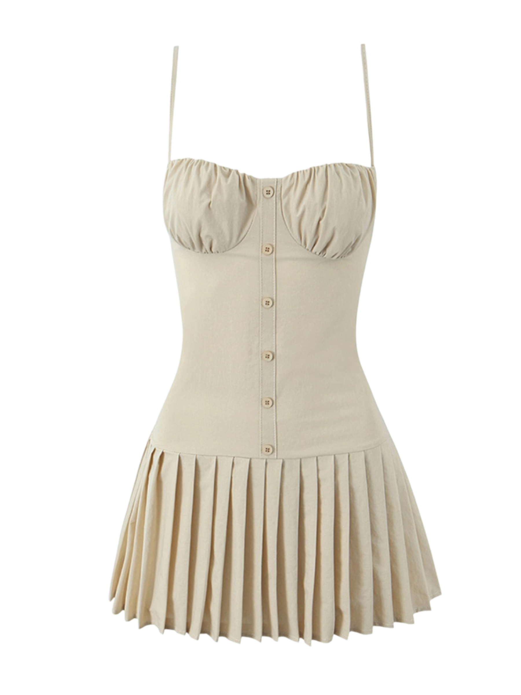 The Ina Pleated Mini Dress is the ultimate blend of playful and sultry. Designed with a flattering corset-style bodice. this dress features delicate ruched detailing at the bust and a button-down front that adds a chic touch. The standout feature? A pleated mini skirt that creates a flirty. feminine silhouette perfect for any occasion. Whether in bold red or classic black. this dress is a must-have for turning heads.