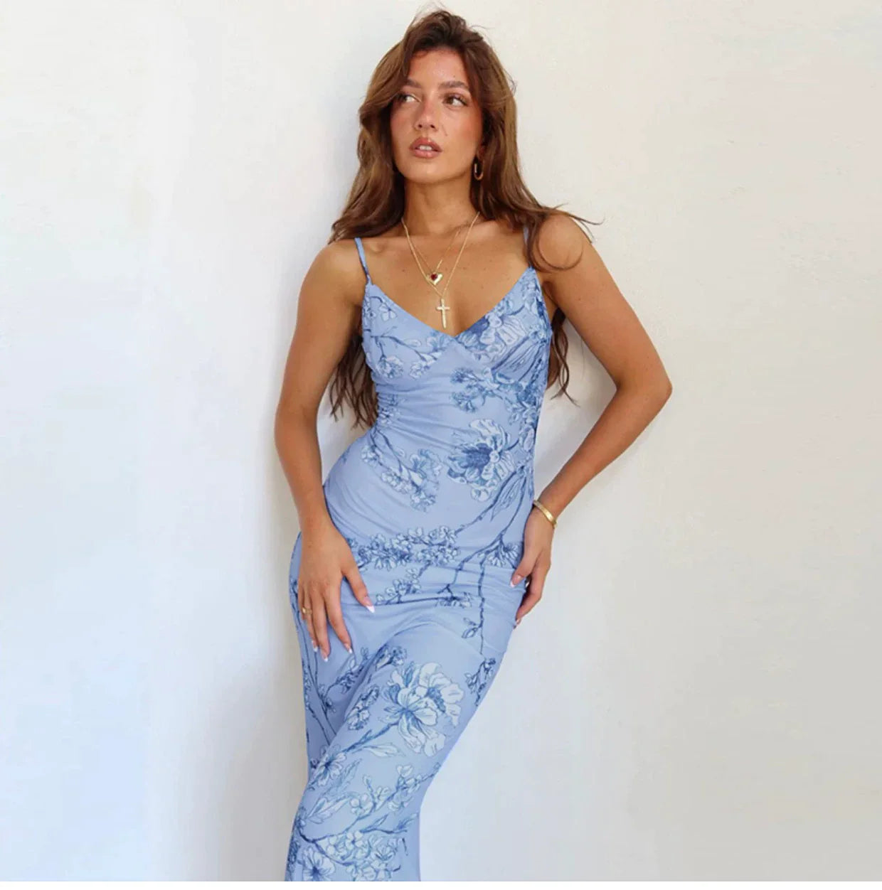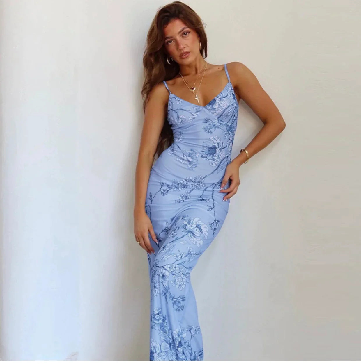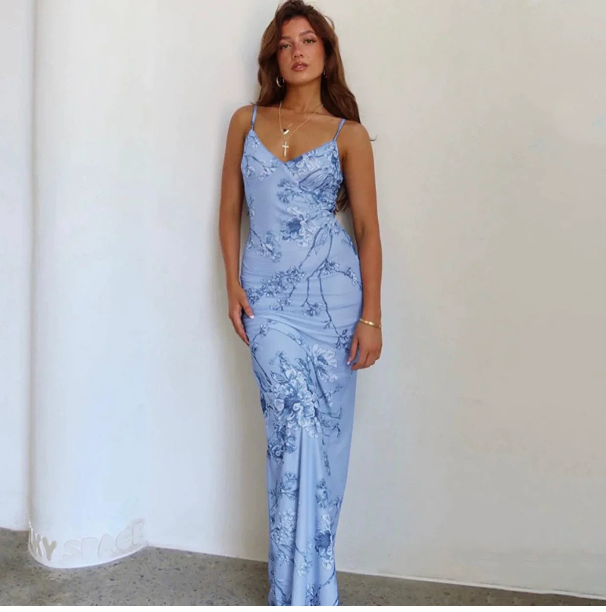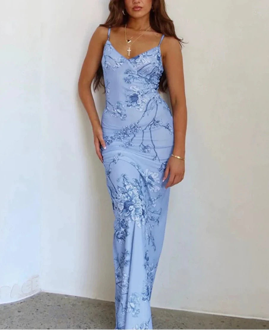 Step into Summer with style in the Inessa Floral Maxi Dress! This French-inspired dress features a figure-hugging bodycon fit. romantic floral print. and lace detailing that'll have everyone doing a double take! With an attractive blue color and a V-neckline. you'll look ravishing in this Aesvs - Summer's in Bloom Collection piece. Who says elegance can't be fun?!