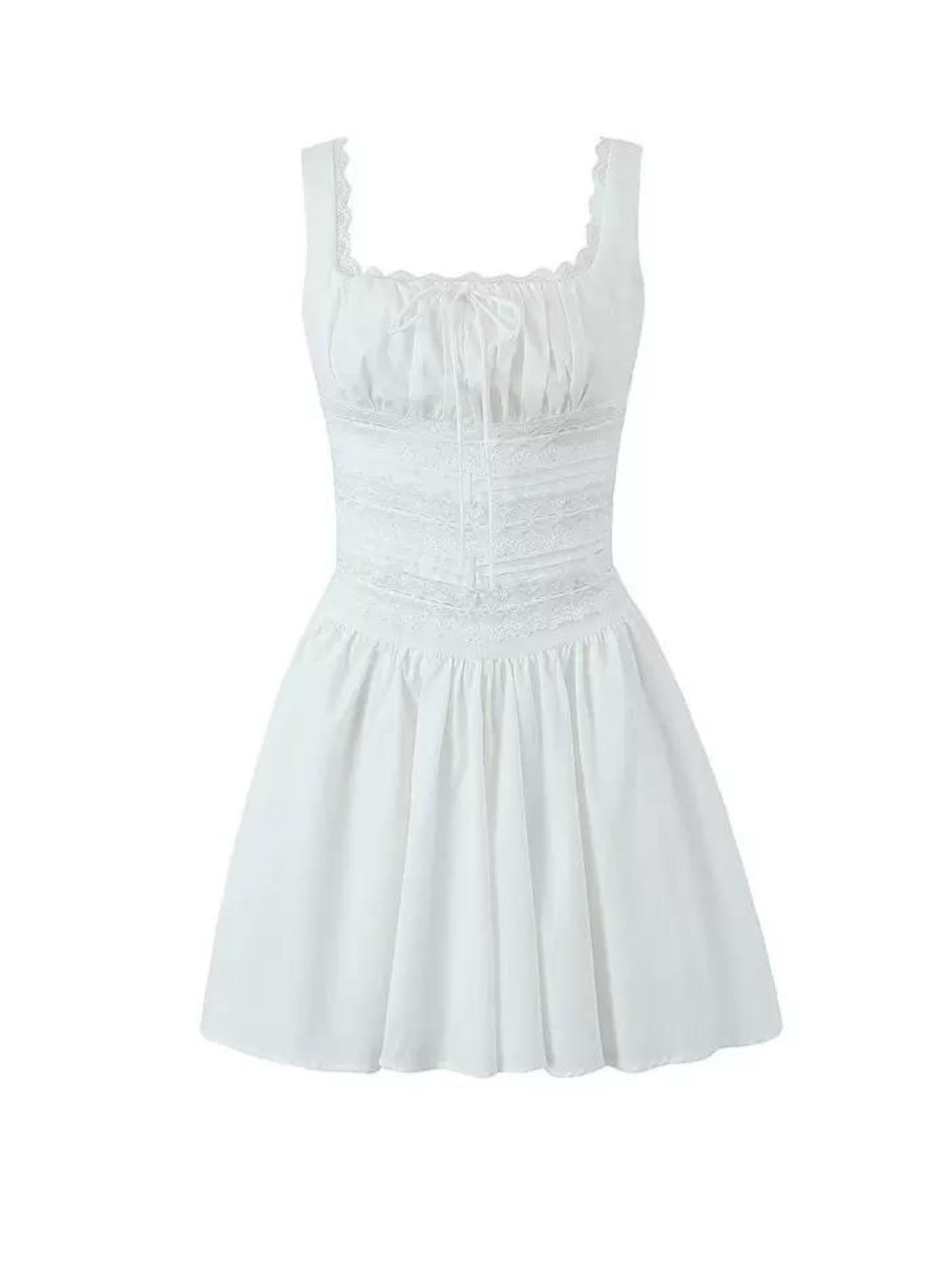 It's time to make someone swoon! Our Isabella Lace Mini Dress is nothing short of a love letter! From the romantic A-line silhouette to the pleated skirt and lace panel waist with drawstring tie-up. you'll look as sweet as can be. Plus. the fully lined square neck is perfect for a day-to-night transition. so stay cozy and stylish in the Aesvs collection!
