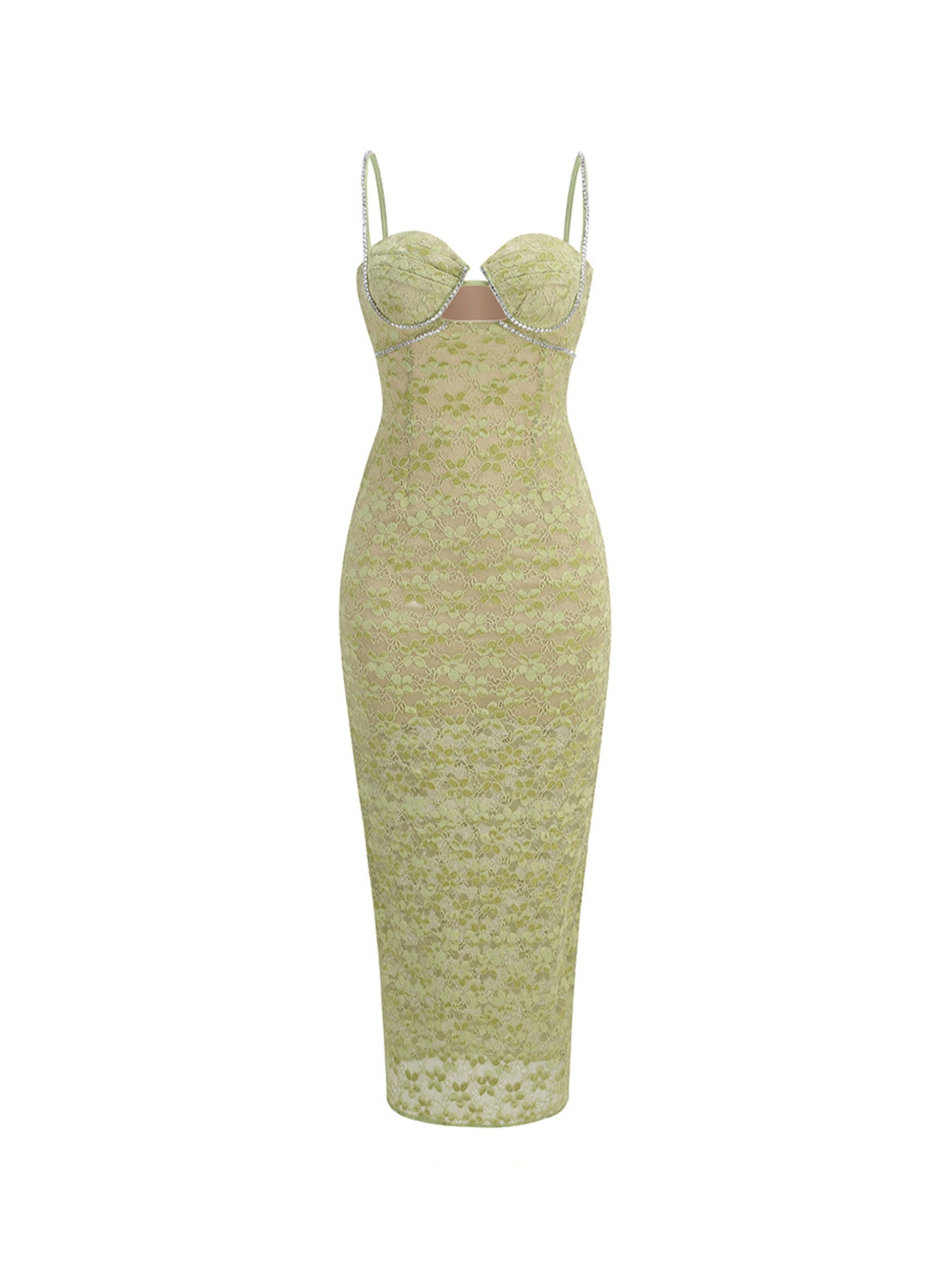 Introduce a playful yet elegant touch to your wardrobe with the Jena Lace Midi Dress in Olive Green. This delightful dress perfectly balances sophistication with a hint of whimsy. making it a versatile choice for any occasion. Featuring adjustable spaghetti straps and a high waist. the Jena dress is designed to accentuate your figure. offering a flattering slim fit that hugs your curves in all the right places.