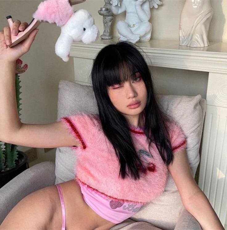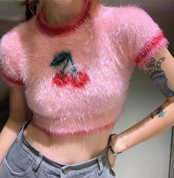 Get ready to turn heads with our Jewel Plush Cherry Short Sleeve Top! The two-tone pink color adds a vibrant touch to any outfit. while the short-sleeved design offers both style and versatility. Made with plush fabric. this top ensures maximum comfort. making it perfect for all your Aesvs.
