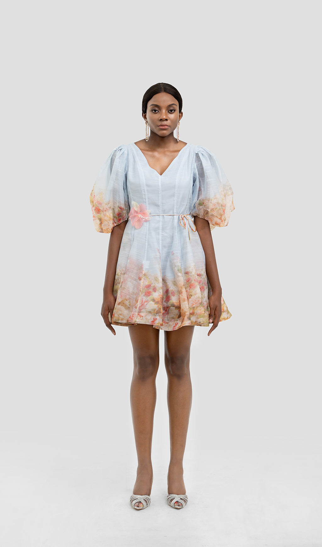 This dress is a delightful combination of sophistication and playfulness. featuring charming floral patterns and puff sleeves that exude a touch of feminine grace. Perfect for both casual and special occasions. this dress lets you make a statement with style and grace.