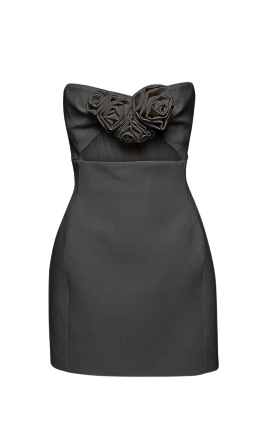 The Strapless Cutout Mini Dress is sure to make a stunning statement. Crafted with a strapless design. 3D flower elements. and bold cutouts. this mini dress is perfect for creating a truly unique look. It features a mini length that ensures a flattering fit. while an eye-catching color will make sure you stand out.