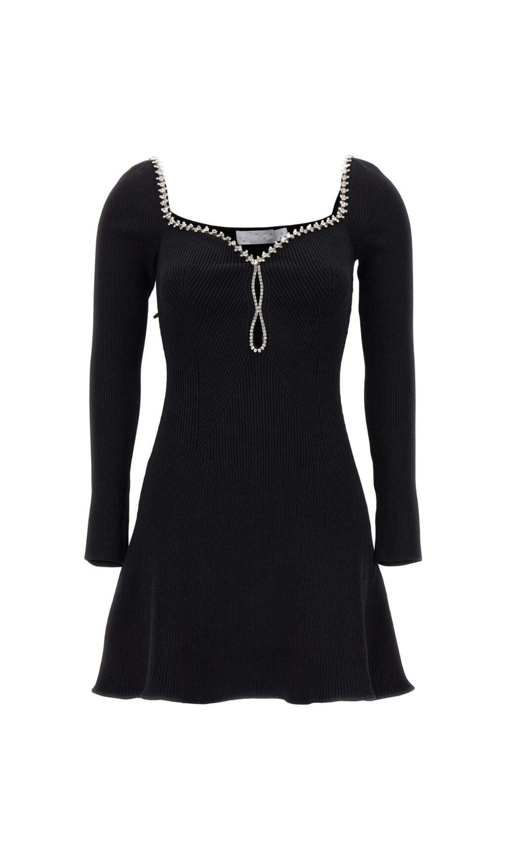 KNIT DIAMANTE MINI DRESS IN BLACK